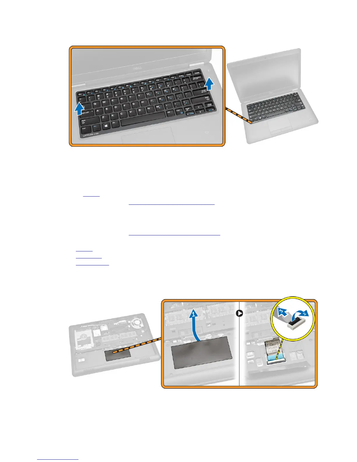 a. Peel the adhesive tape to access the keyboard cable [1].