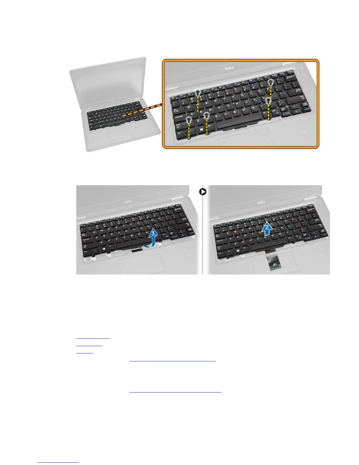 2. Tighten the screws to secure the keyboard on the palmrest.