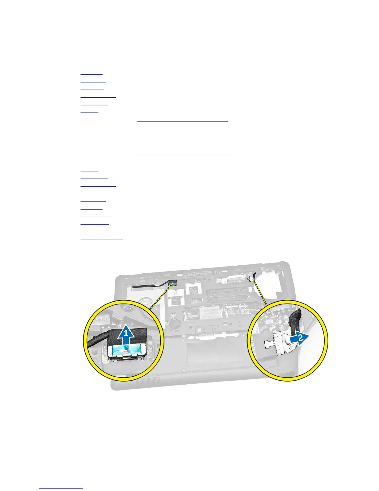 4. Disconnect the speaker cable [1] [2]and I/O board cable [3] from their connectors on the system
