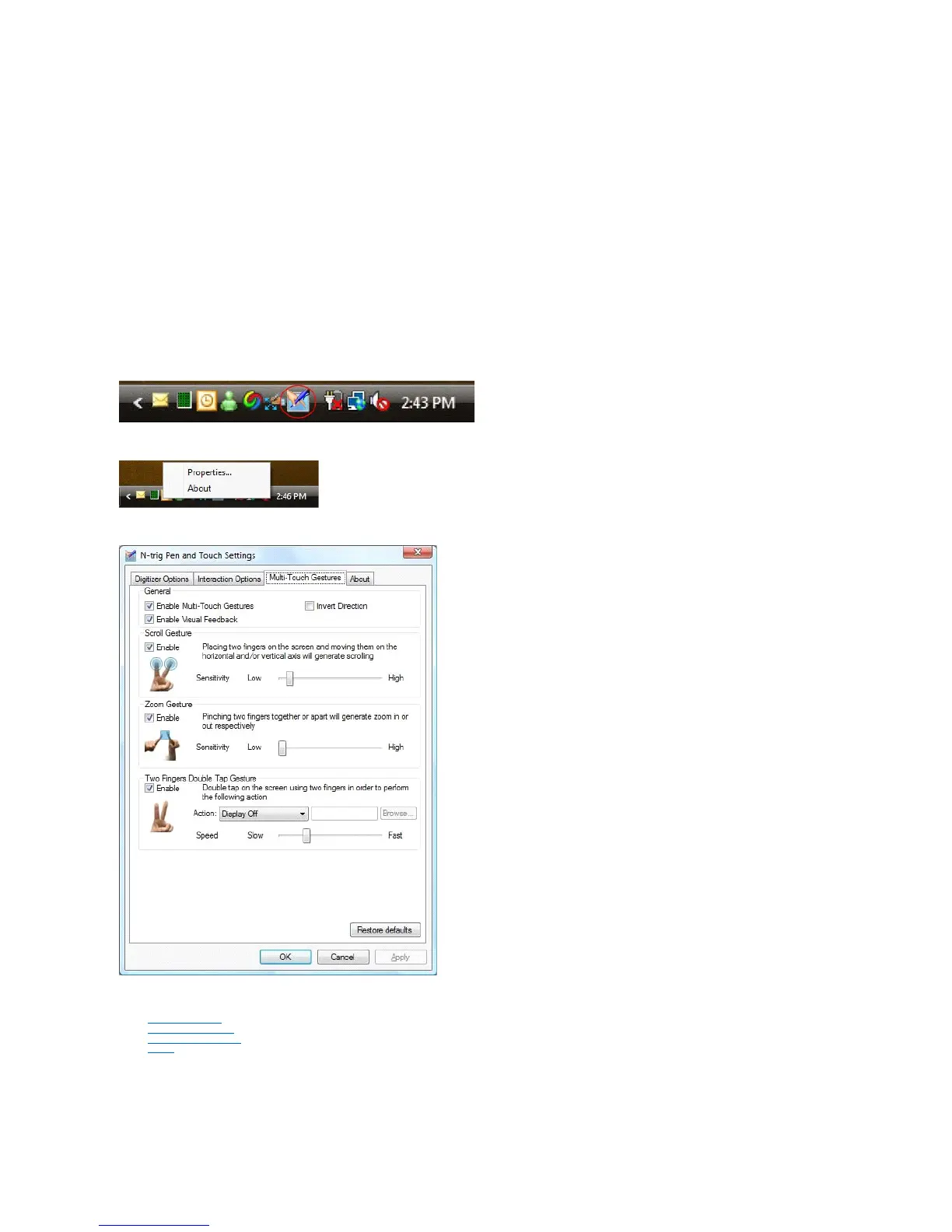The N-trig Tablet Settings applet is used to adjust several settings for the digitizer. Once the N-trig drivers are loaded, an icon appears in the system tray.