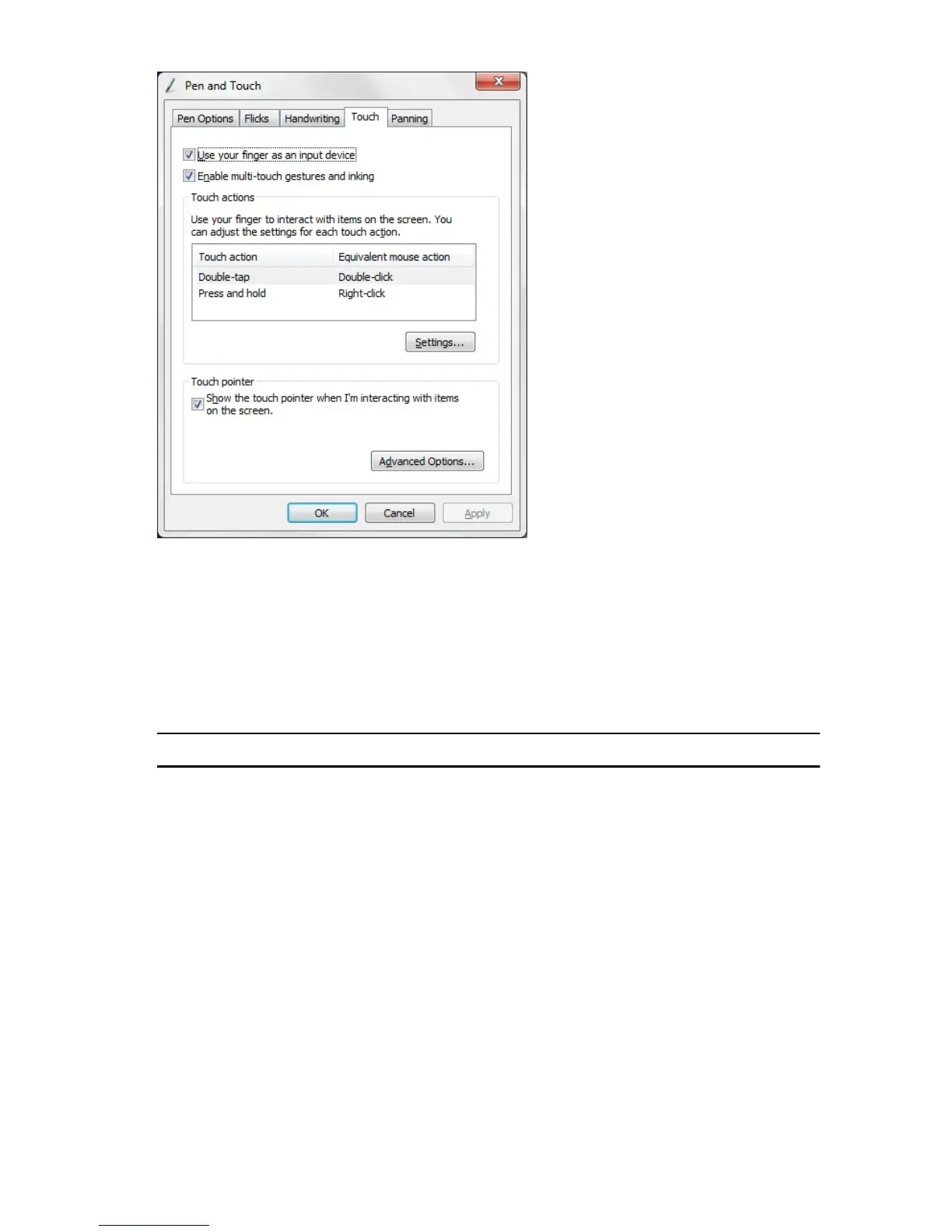 Right-click on a mouse Touch the pen on the screen and hold it in place