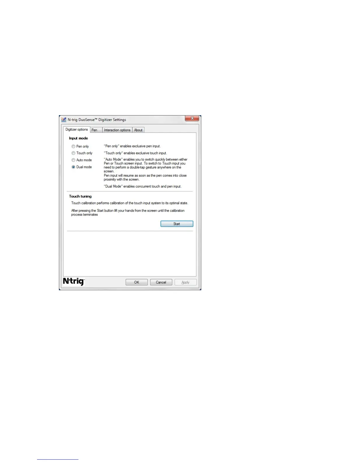 Figure 8. N-trig DuoSense Digitizer Settings — Digitizer options