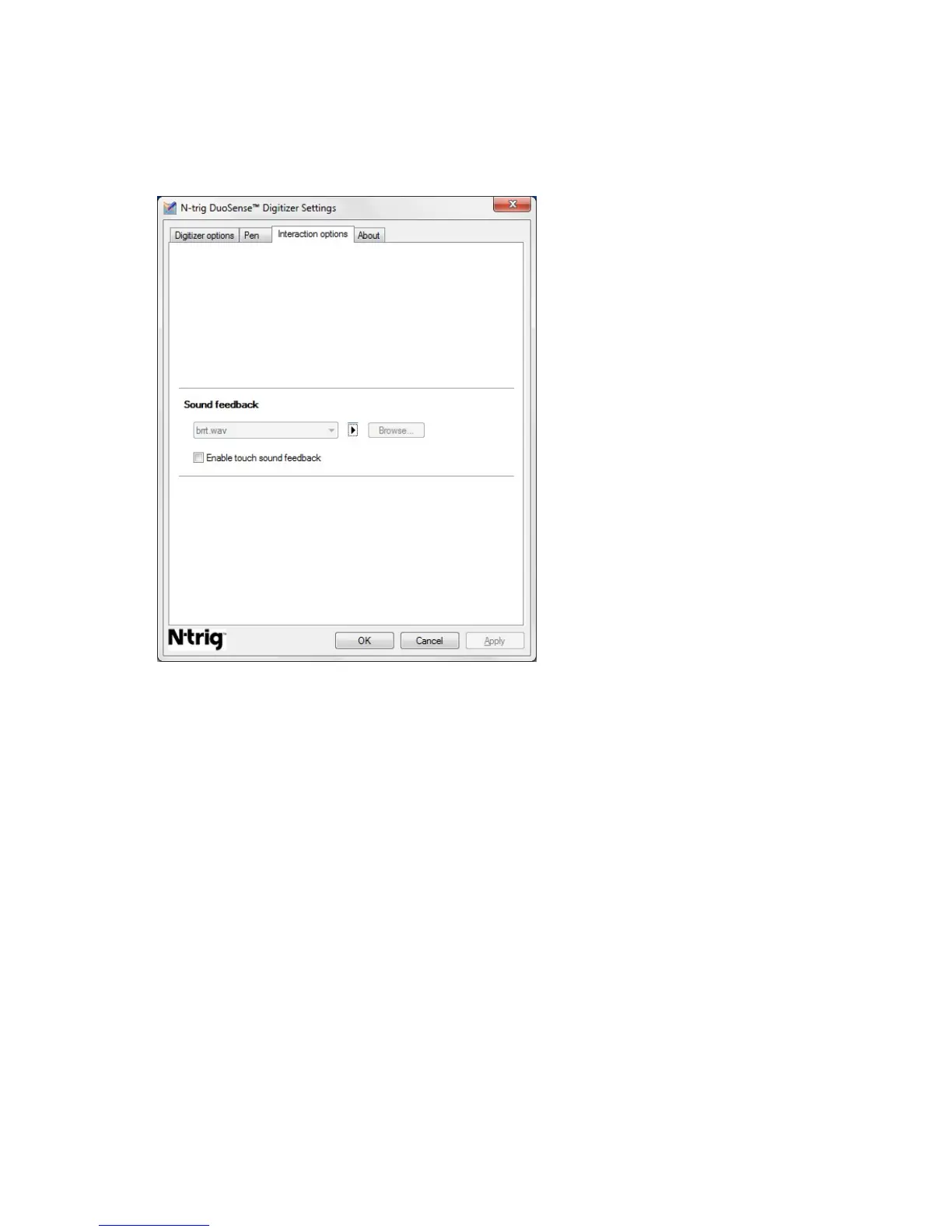Figure 10. N-trig Duo Sense Digitizer Settings — Interaction options