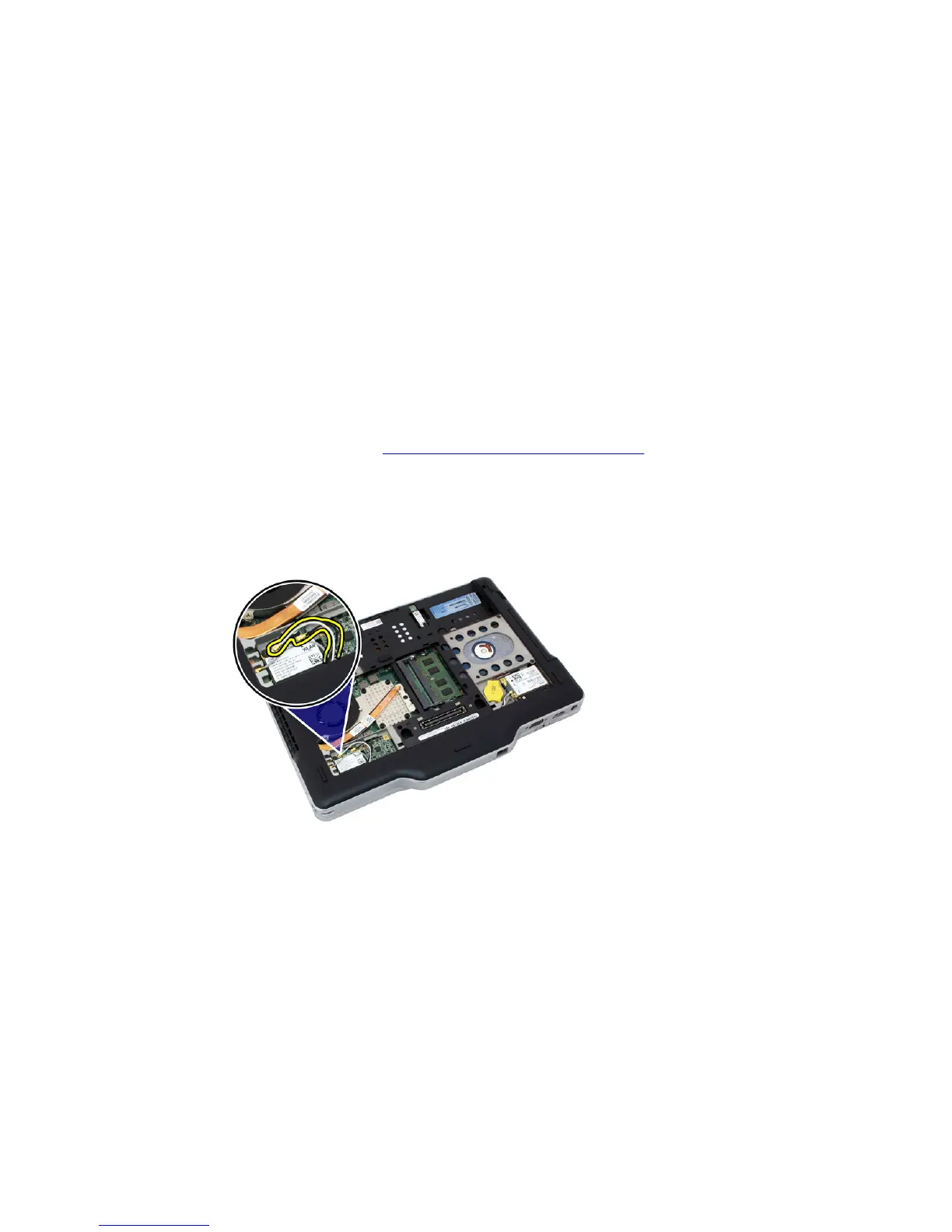 Dell Latitude XT3 - Wireless Local Area Network (WLAN) Card; Removing the Wireless Local Area Network (WLAN) Card
