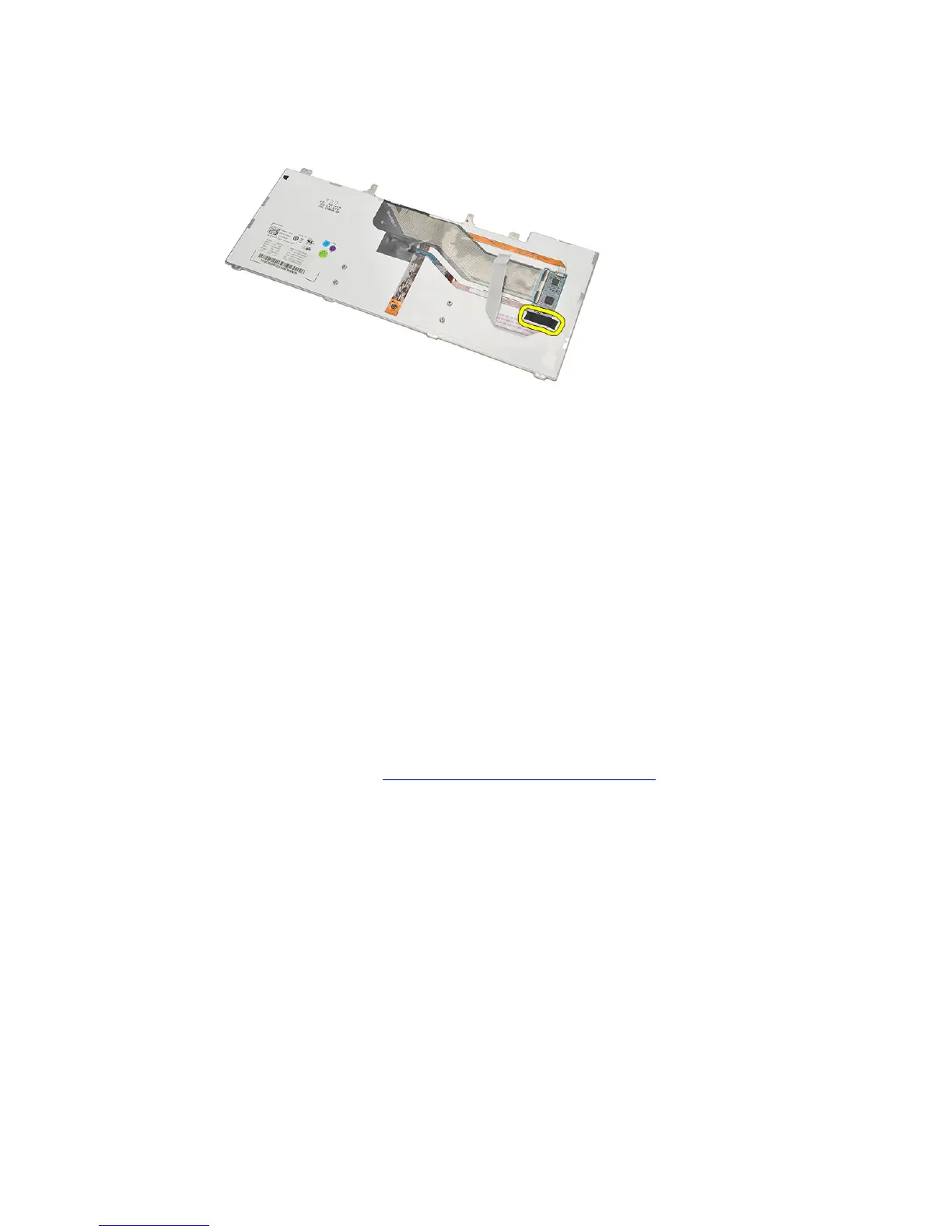1. Affix the mylar tape to secure the keyboard data cable to the back of the keyboard.