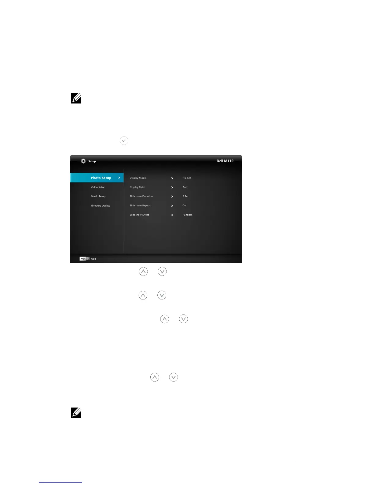 NOTE: Multi-media setup menu and set are the same for the USB, Micro SD,