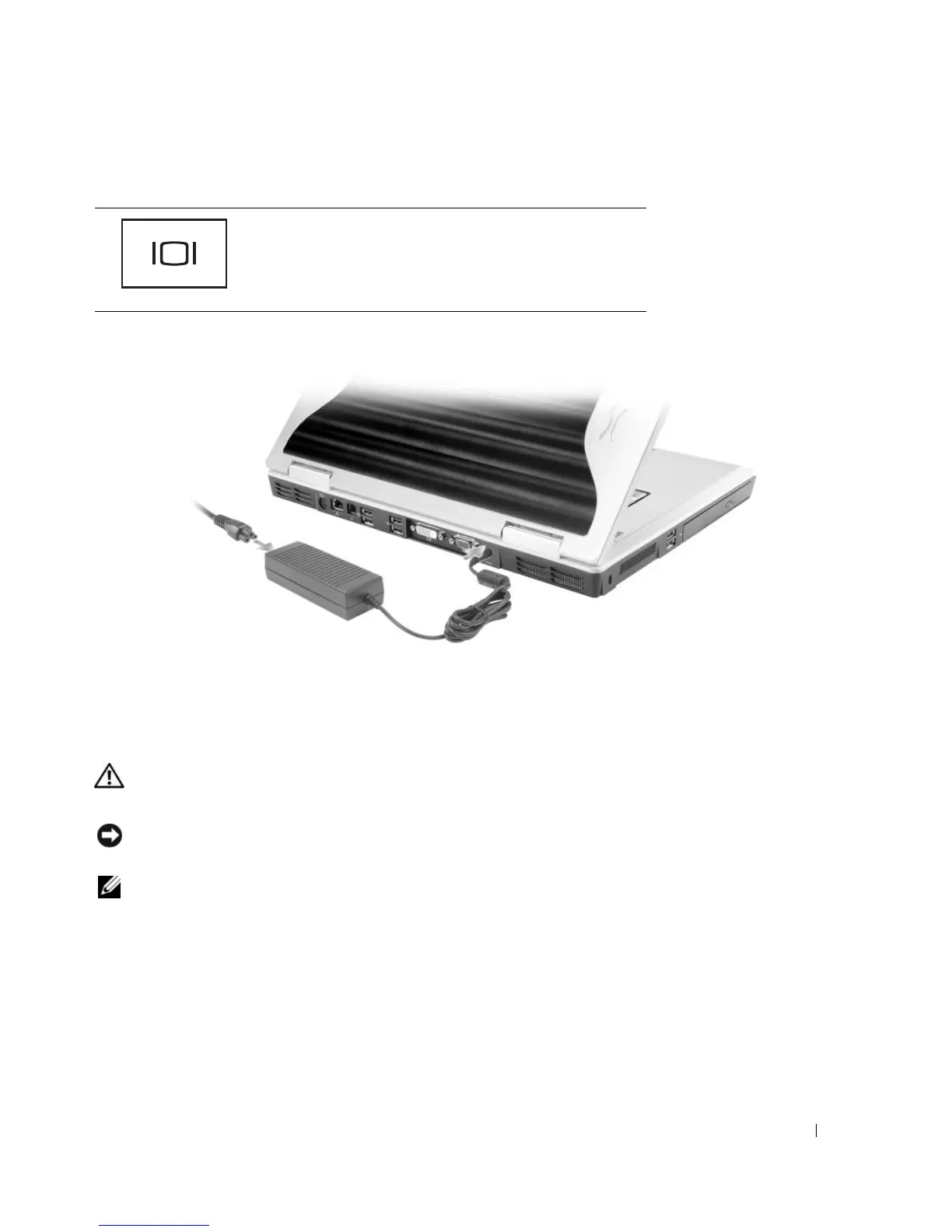 computer. Using less-powerful AC adapters may cause you to receive a WARNING message and may also cause