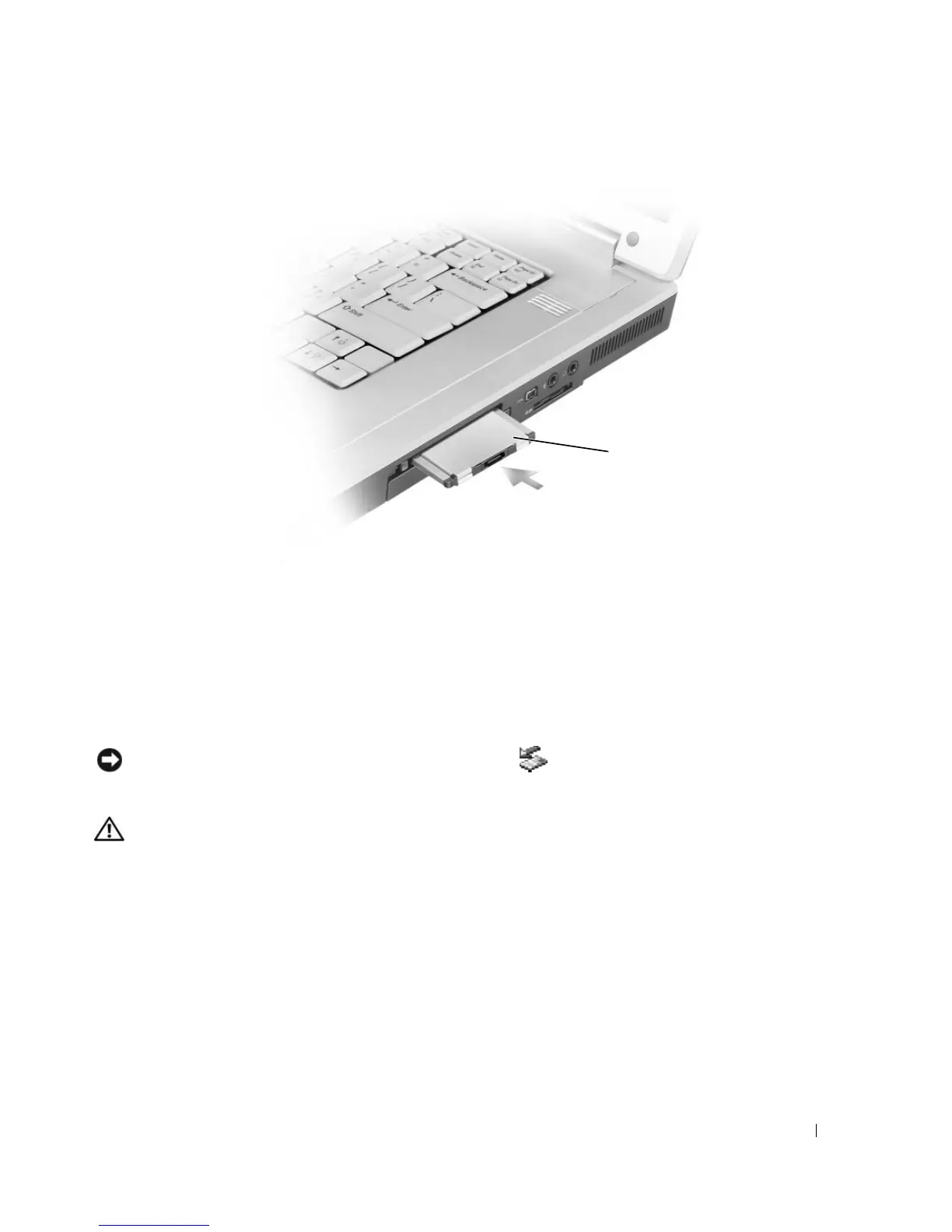 NOTICE: Use the ExpressCard configuration utility (click the icon in the taskbar) to select a card and stop it