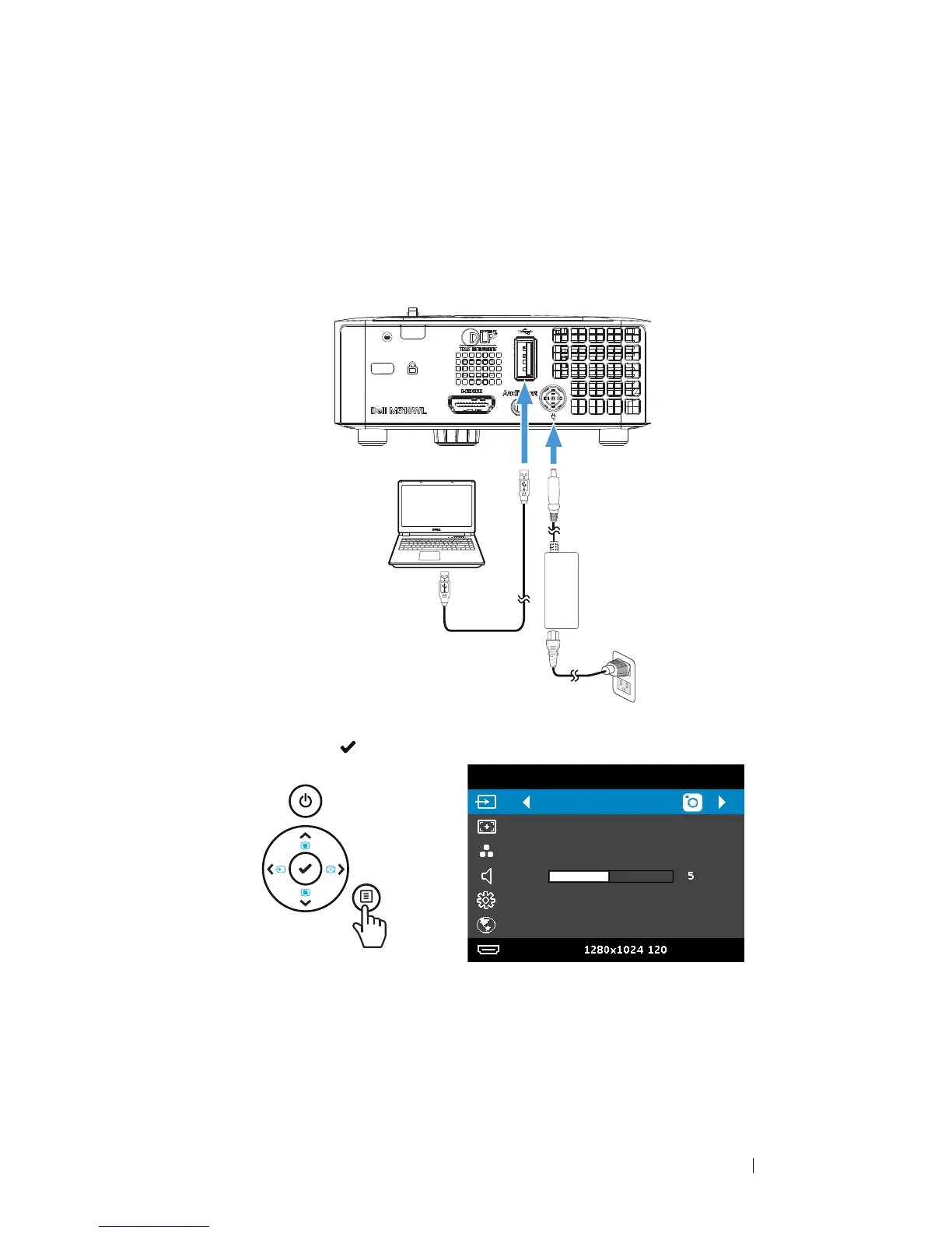 cable to connect computer and projector. Power up the projector by