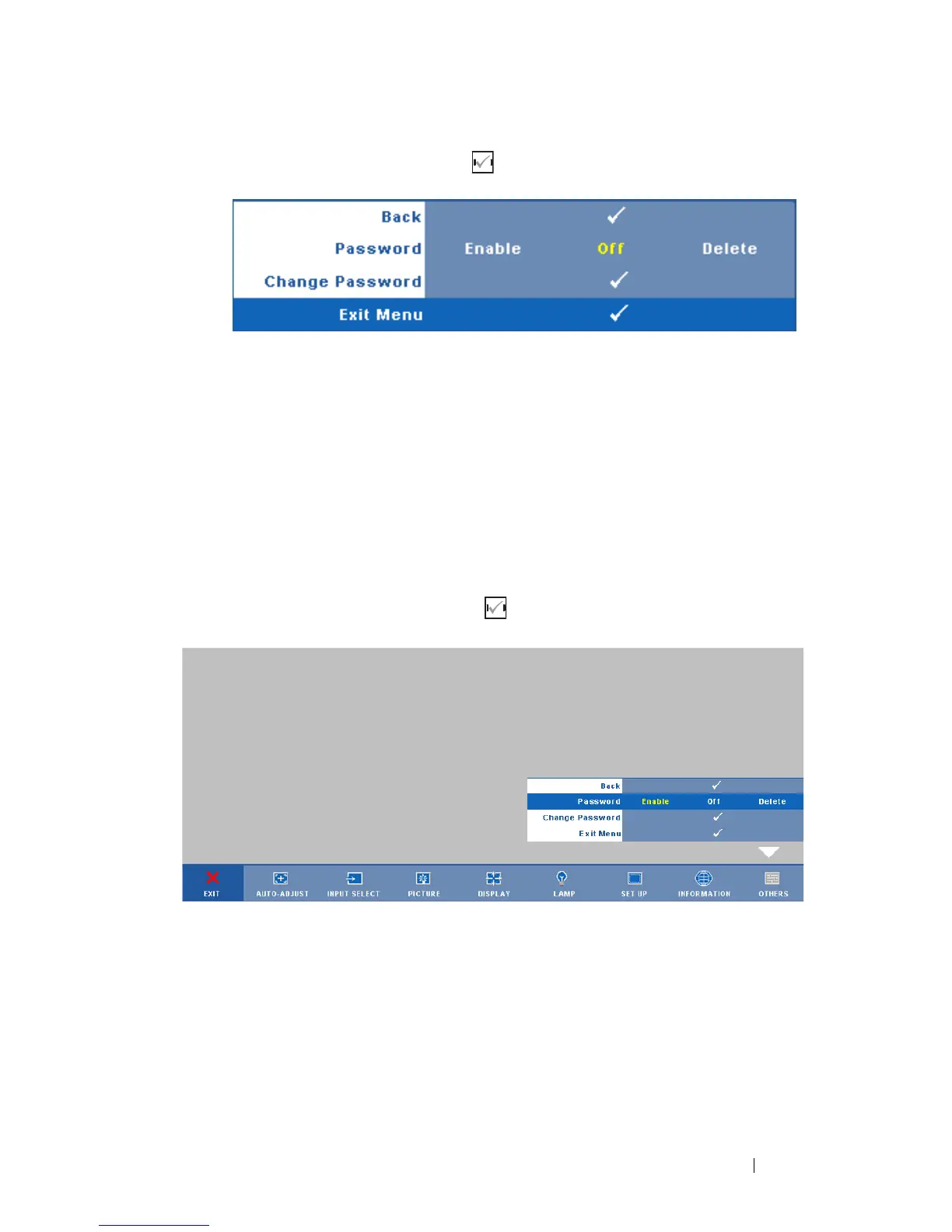 a Go to Others menu, press and then select Password to