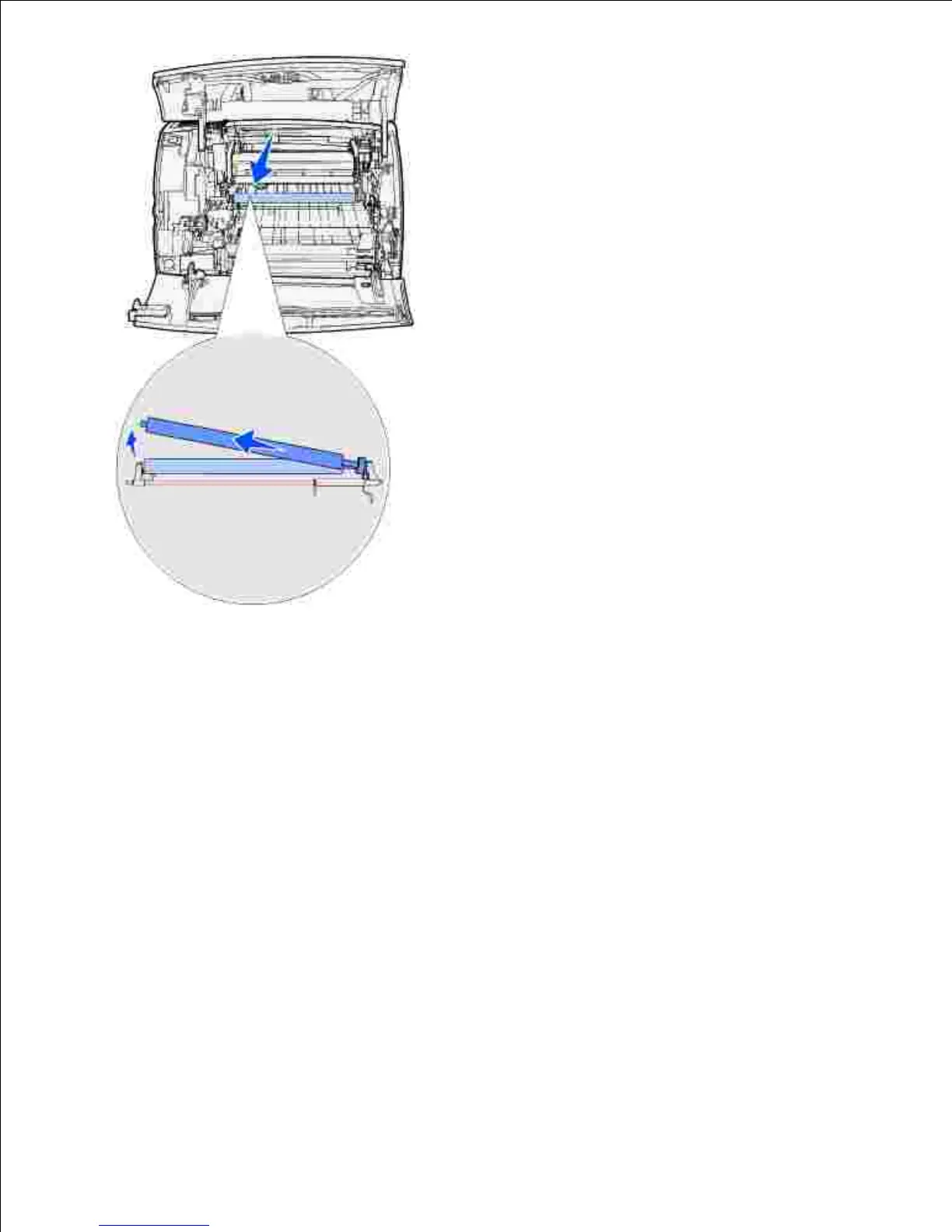 Pull the transfer roller to the left to loosen the right side and then pull it straight out of the printer. Set