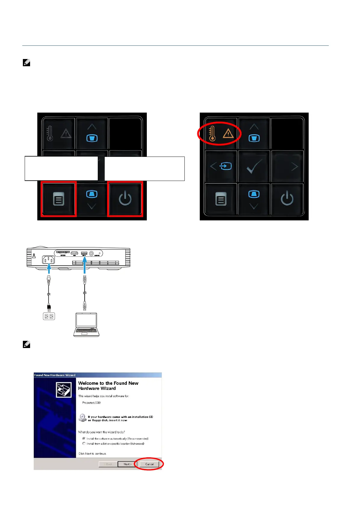NOTE: Please DON’T press power button to turn on the projector when entering download