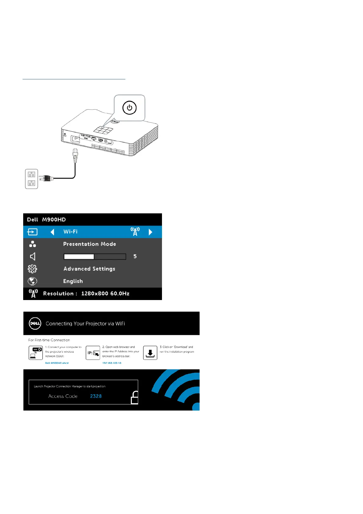 1. Connect the power cable and turn on the projector by pressing the power button.