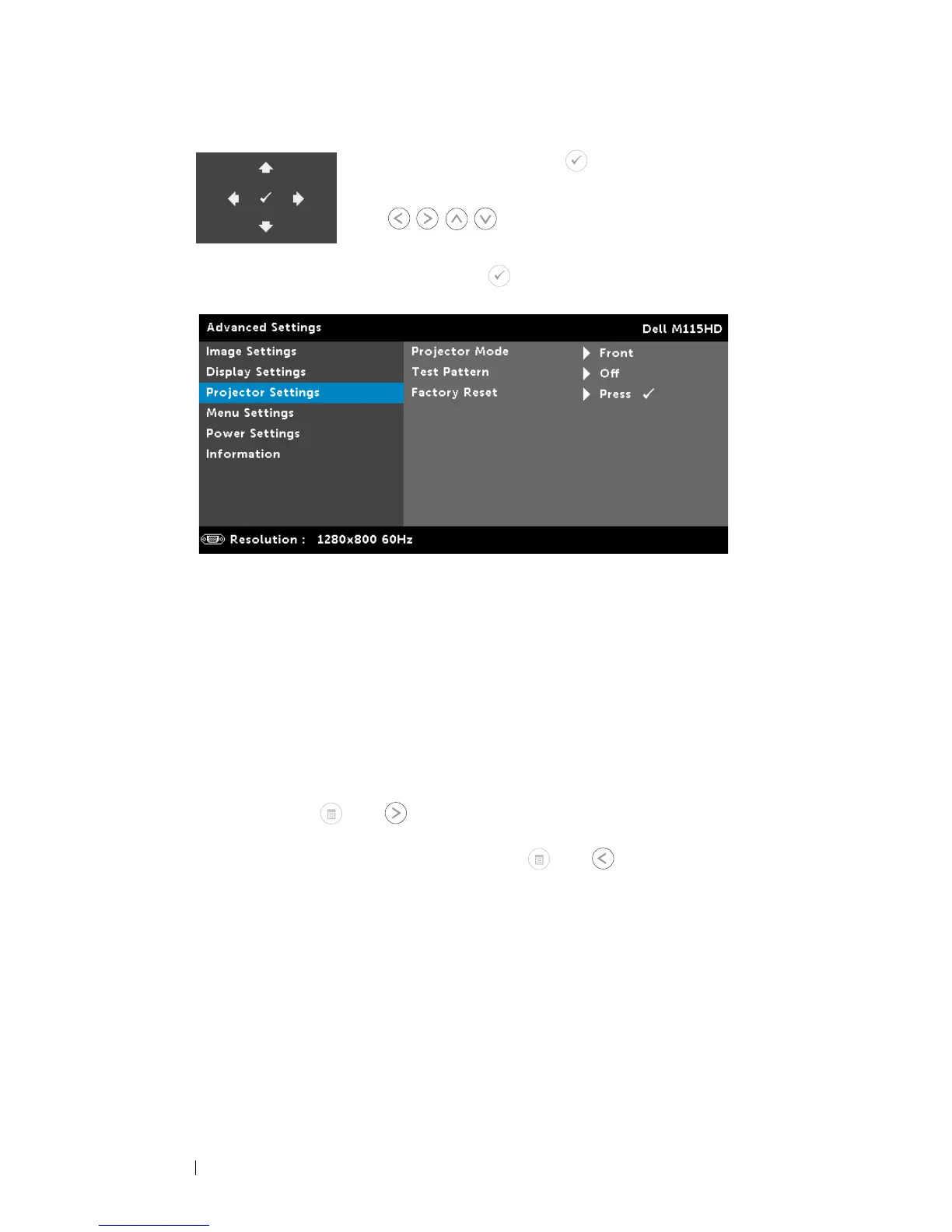 PROJECTOR SETTINGS—Select and press to activate projector settings.