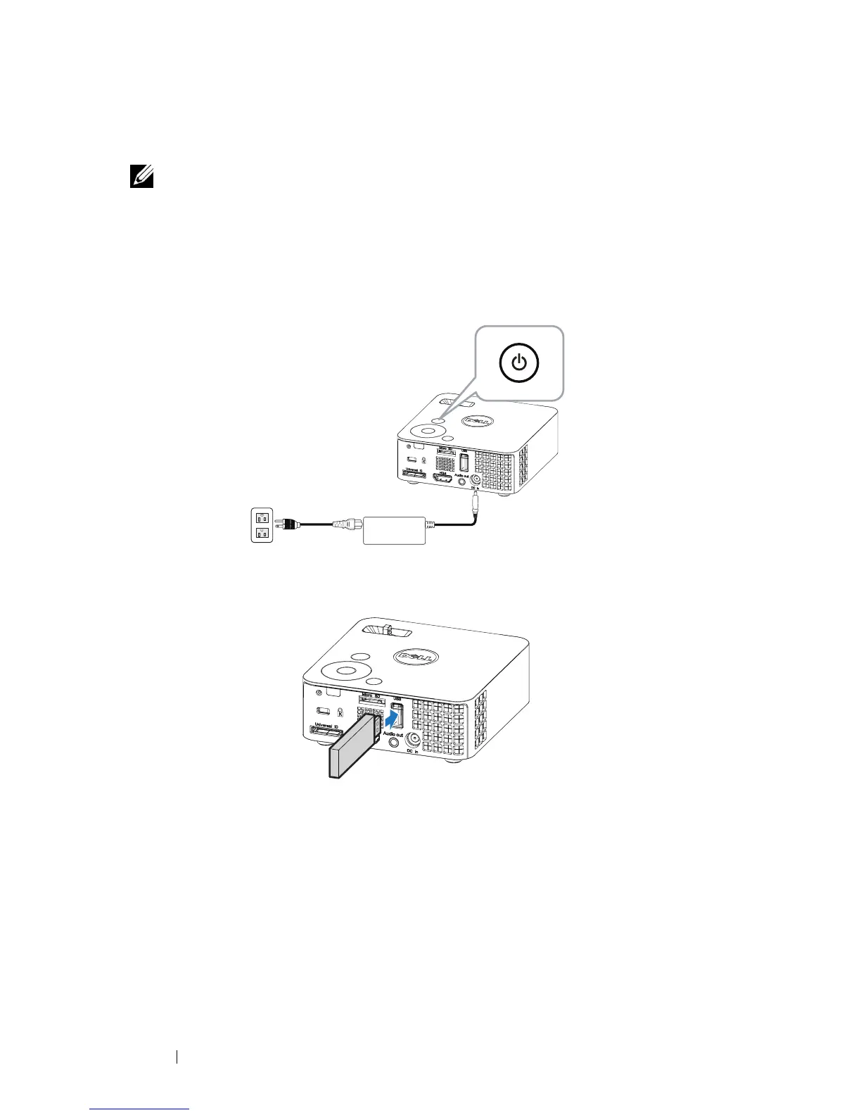 NOTE: A USB flash disk must be plugged into the projector if you