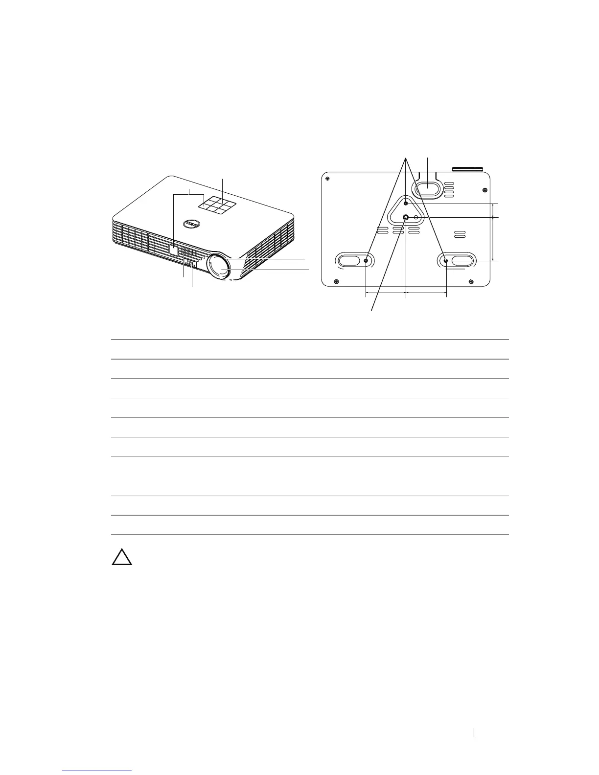 7 Mounting holes for ceiling mount: Screw hole M3 x 6.5 mm depth.