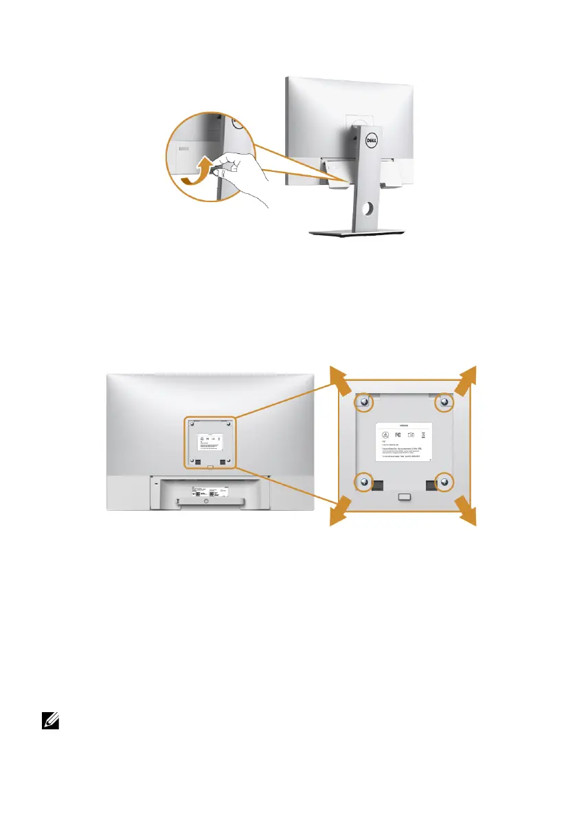 4 Attach the mounting bracket from the wall mounting kit to the monitor.