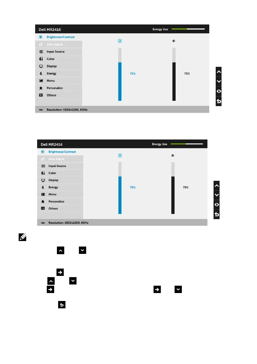 2 Press the and buttons to move between the setting options. As you move