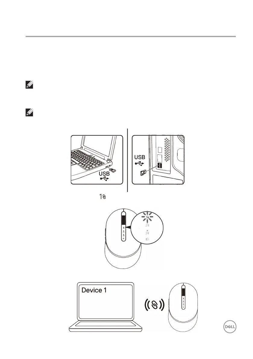 NOTE: You can connect a device to your wireless mouse using the Dell Peripheral