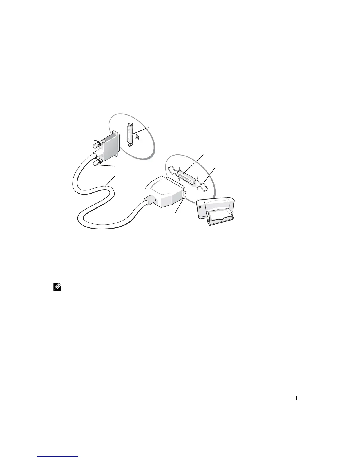 3 Attach the parallel printer cable to the parallel connector on the computer and tighten