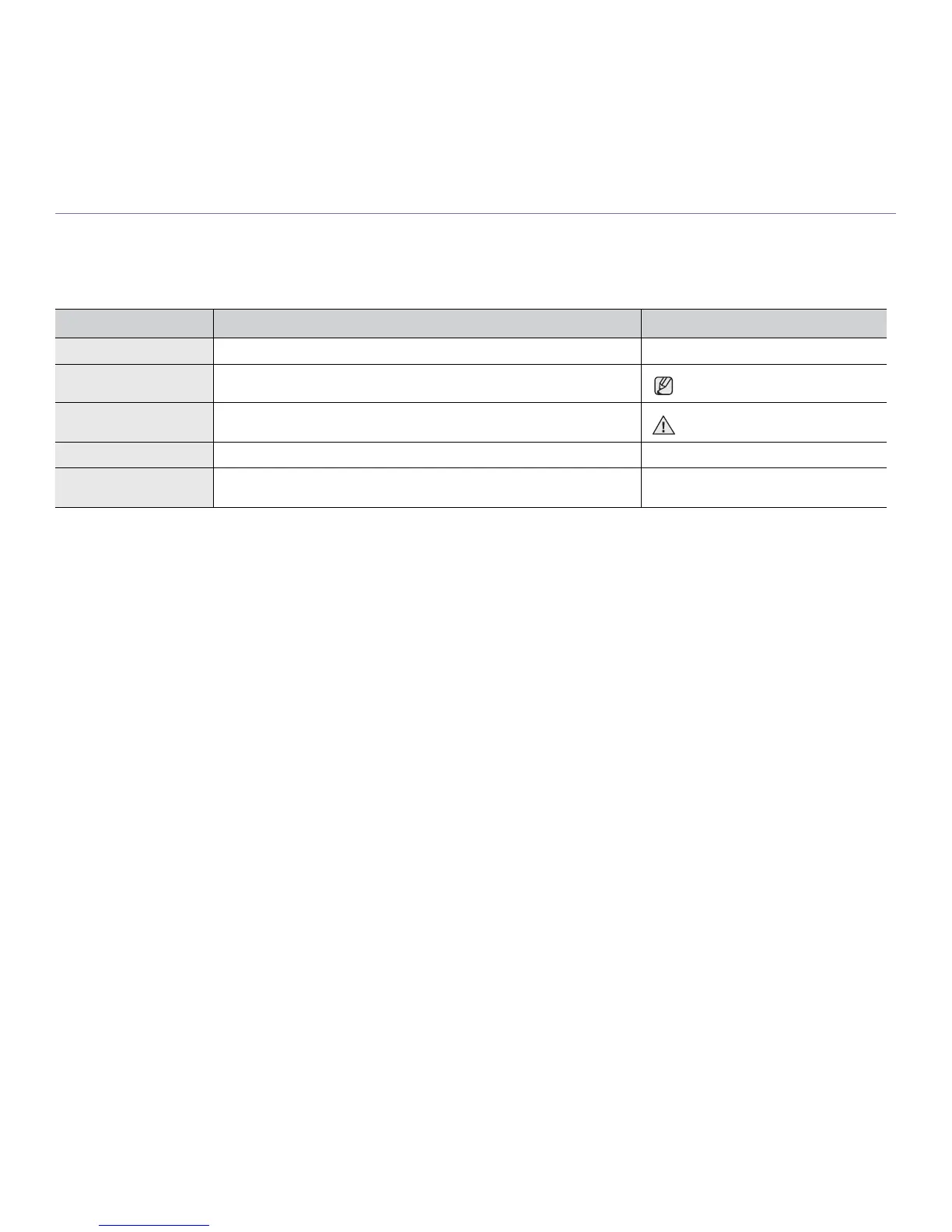 Note Used to provide additional information or detailed specification of the printer