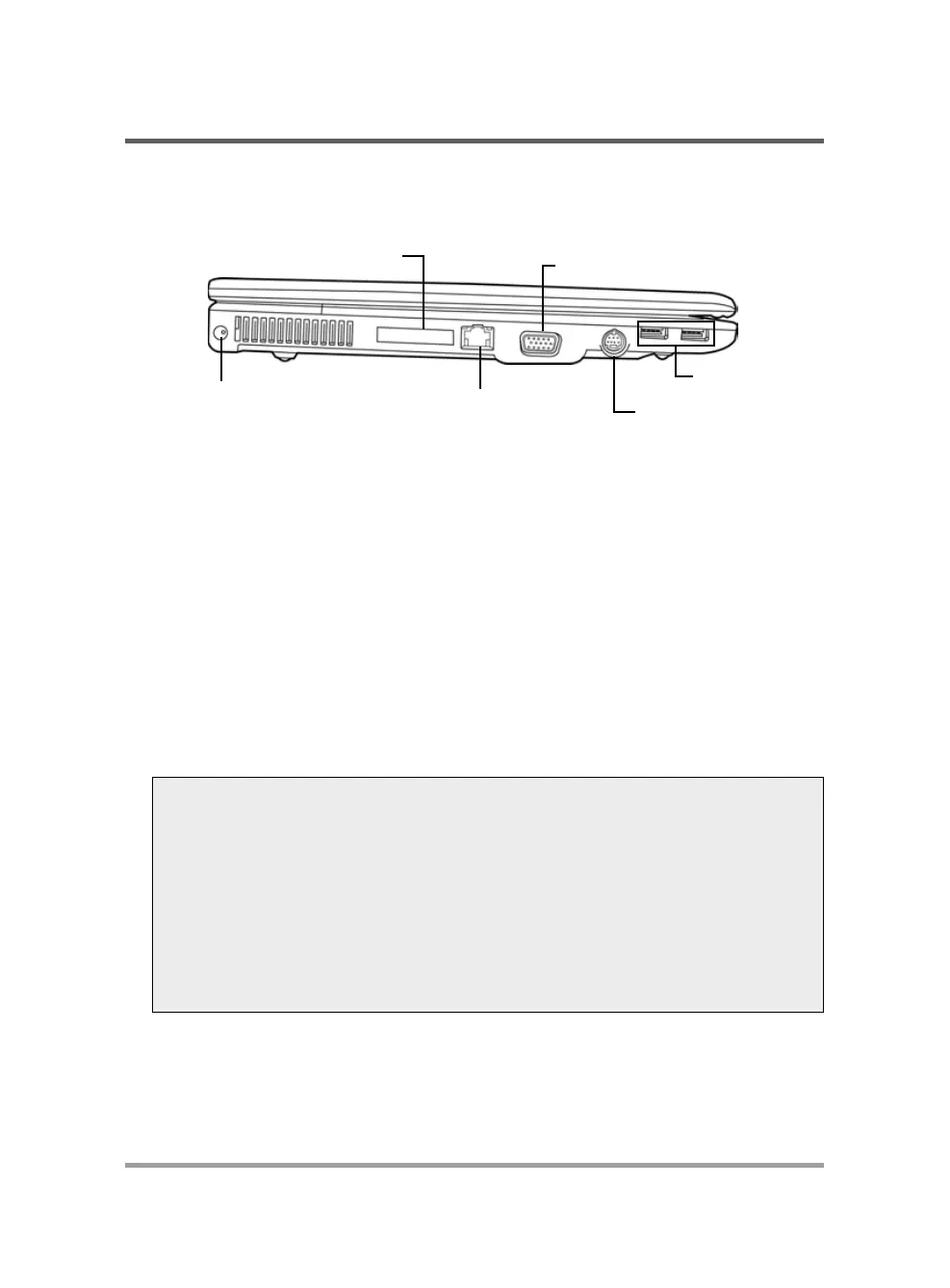 The power adapter port allows you to plug in the AC adapter to power your notebook and charge