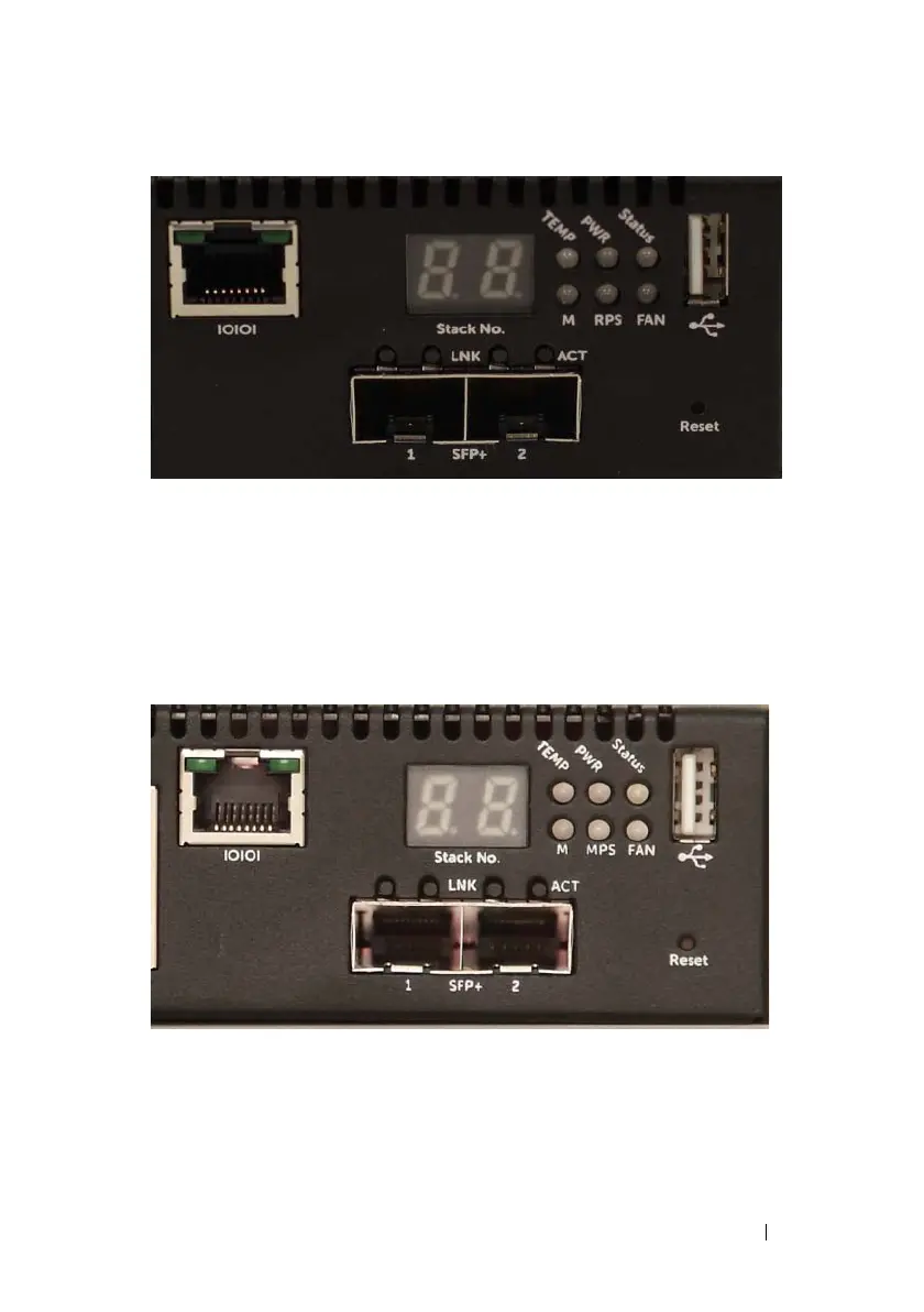 alimentación interna y el estado en la fila superior. En la fila inferior de los
