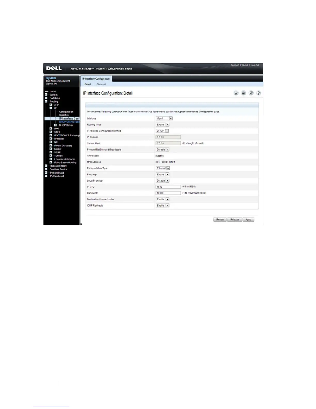 Figure 7-2. IP Interface Configuration (Default VLAN)