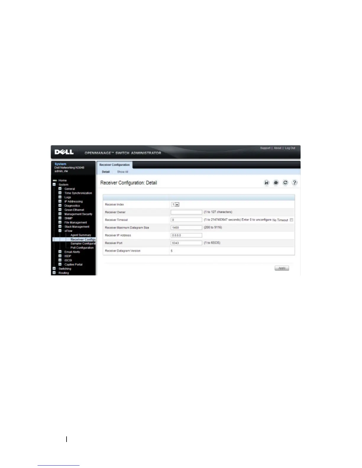 sFlow receiver to which the switch sends sFlow datagrams. You can configure