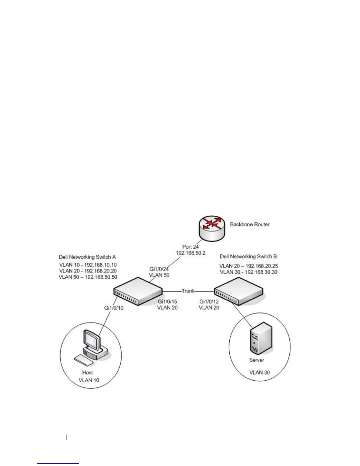 and Dell Networking Switch B. This allows the host in VLAN 10 to