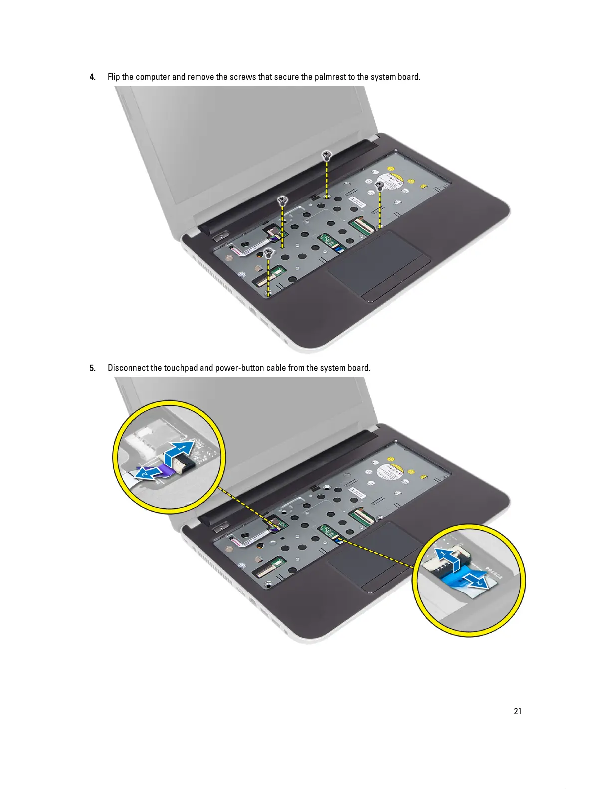 4. Flip the computer and remove the screws that secure the palmrest to the system board.