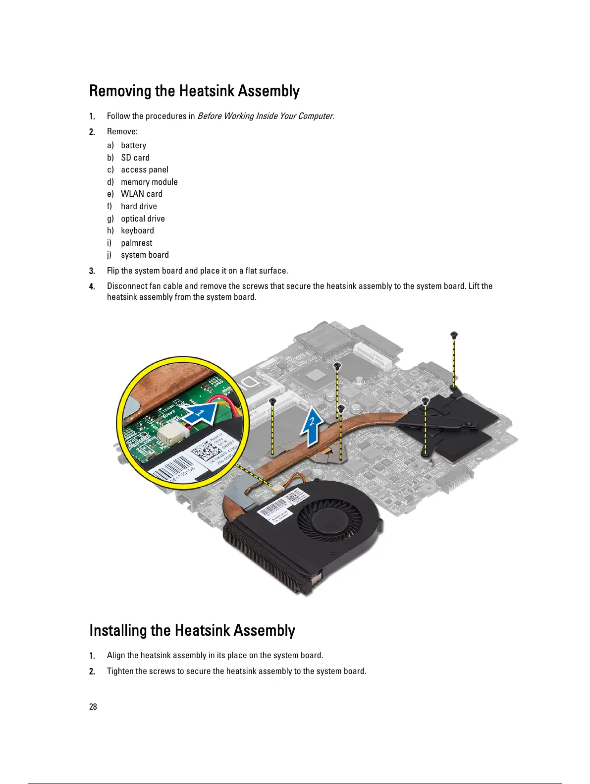 heatsink assembly from the system board.