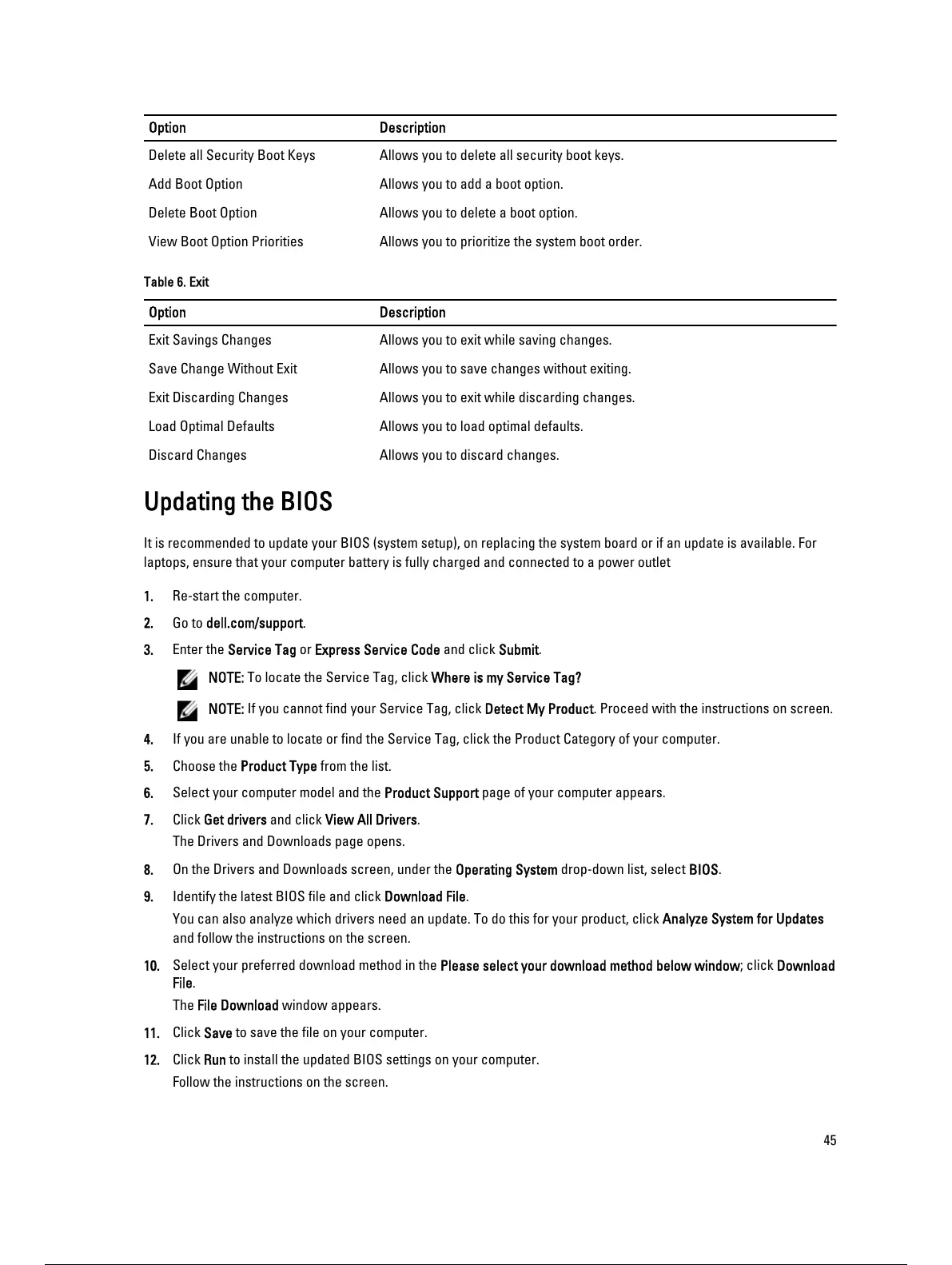 View Boot Option Priorities Allows you to prioritize the system boot order.
