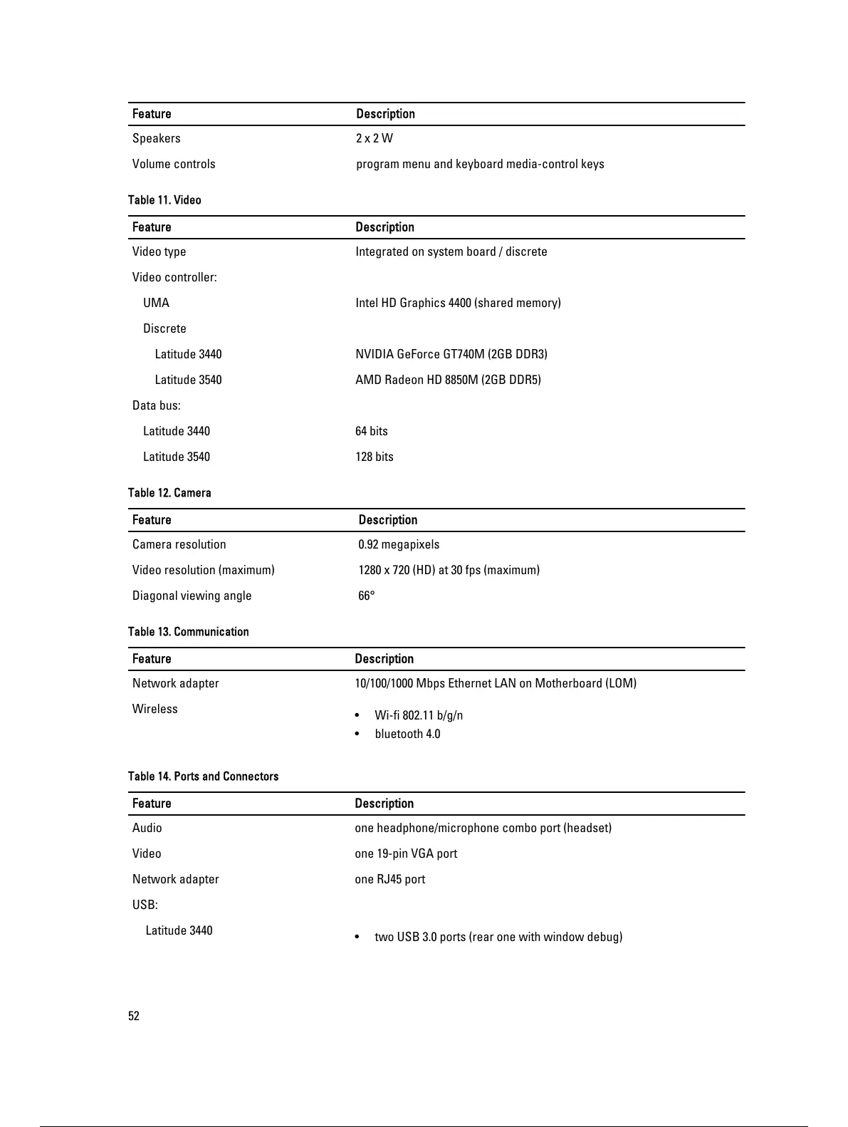 Table 12. Camera