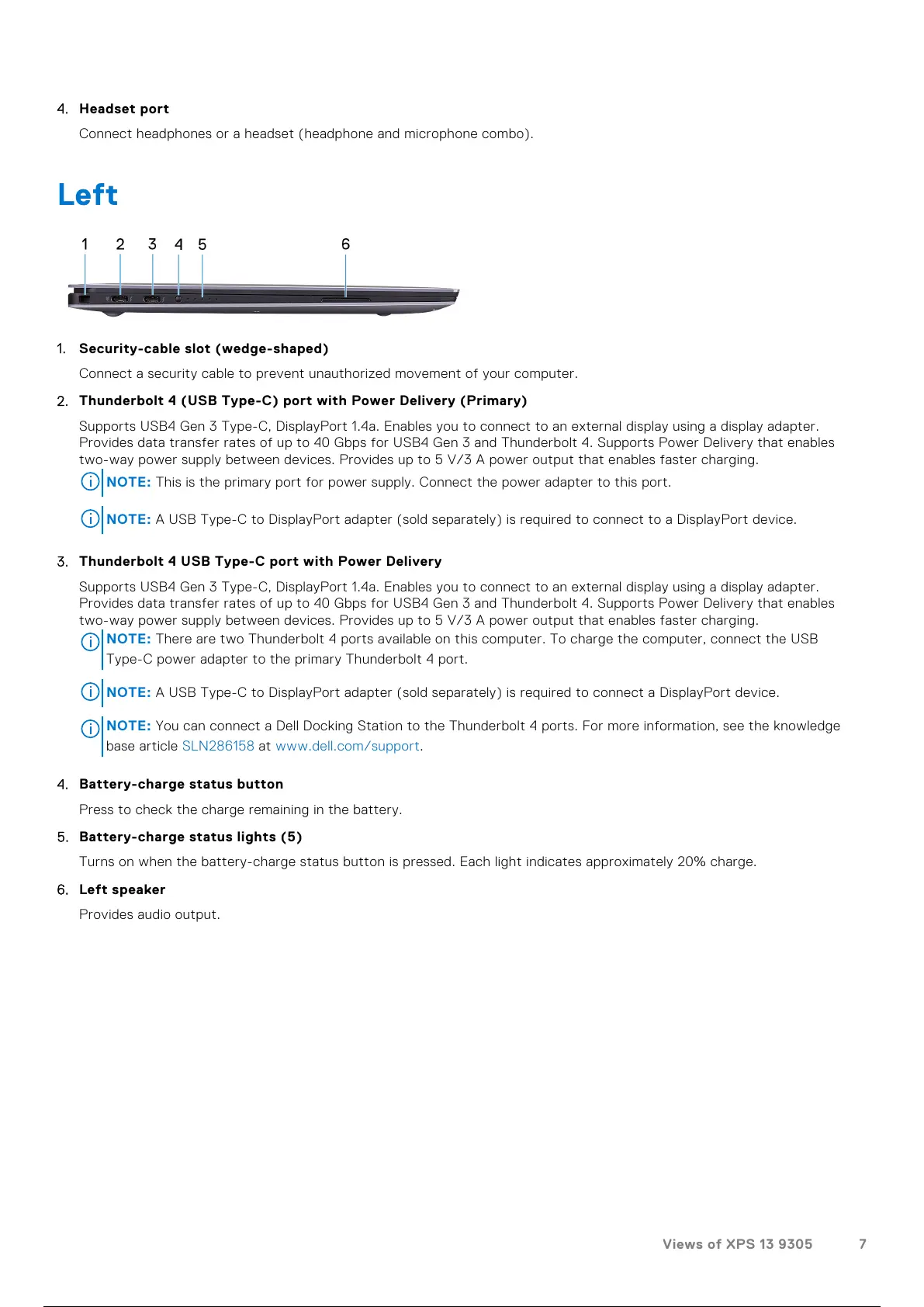NOTE: You can connect a Dell Docking Station to the Thunderbolt 4 ports. For more information, see the knowledge