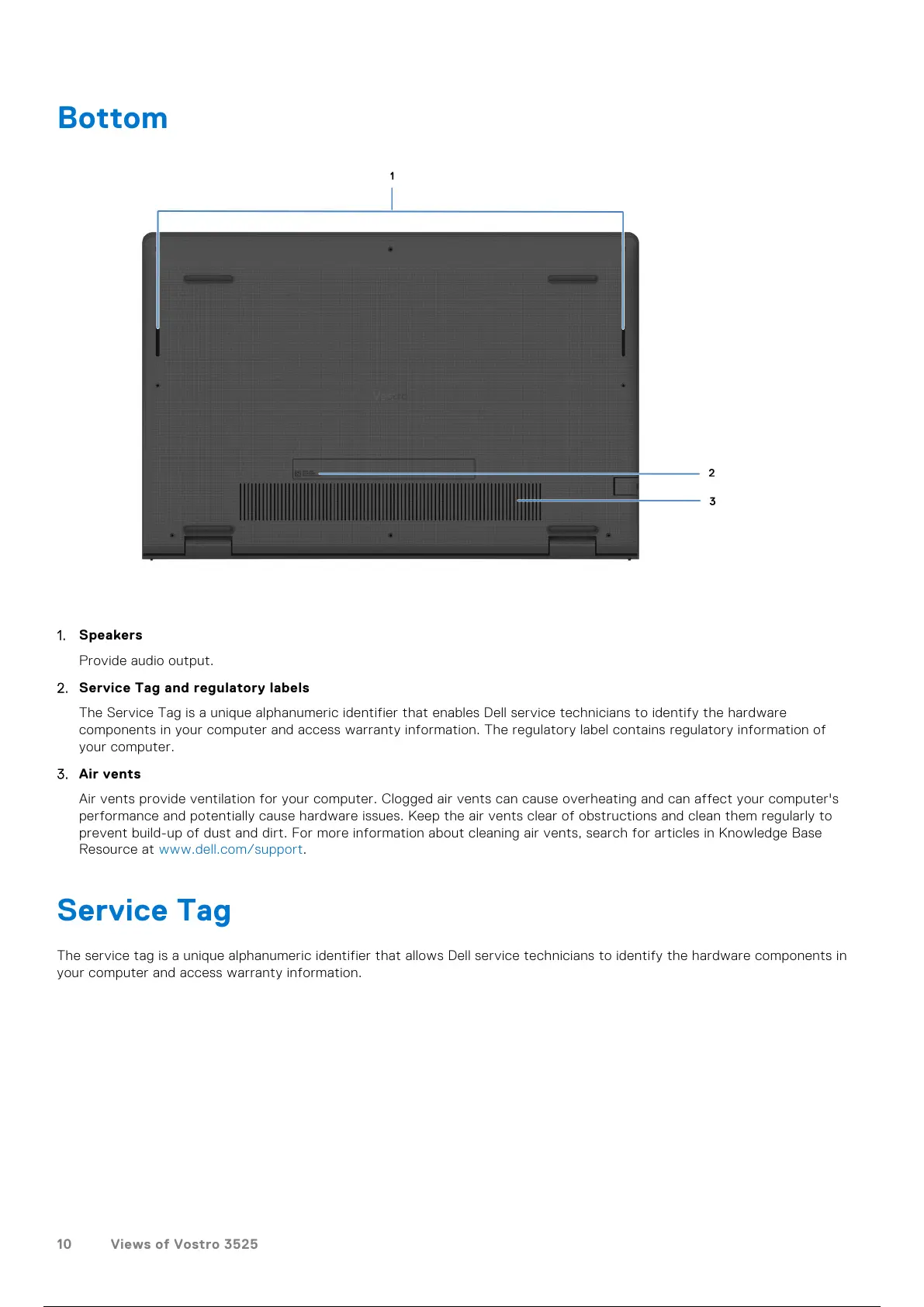 The Service Tag is a unique alphanumeric identifier that enables Dell service technicians to identify the hardware