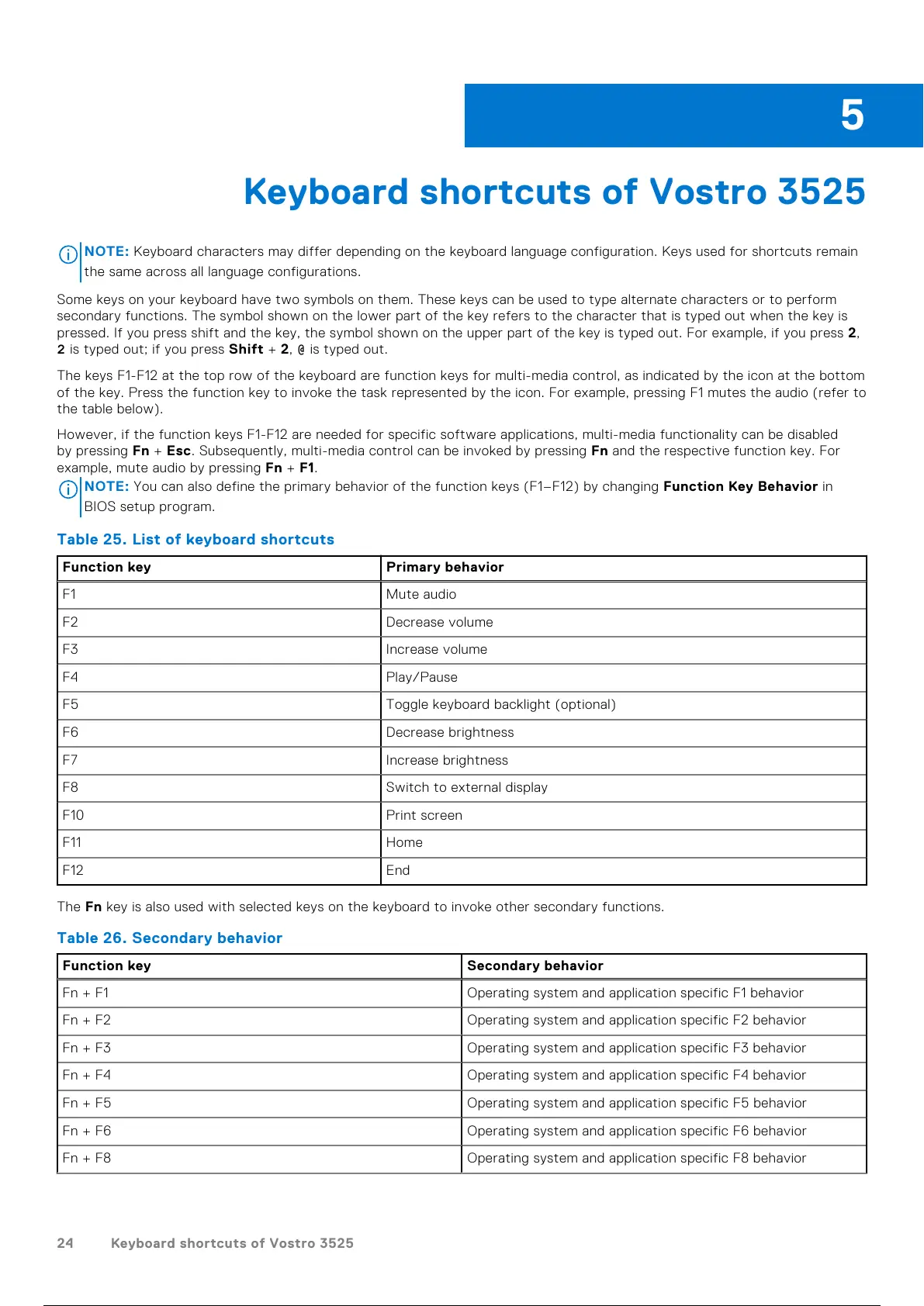 24 Keyboard shortcuts of Vostro 3525