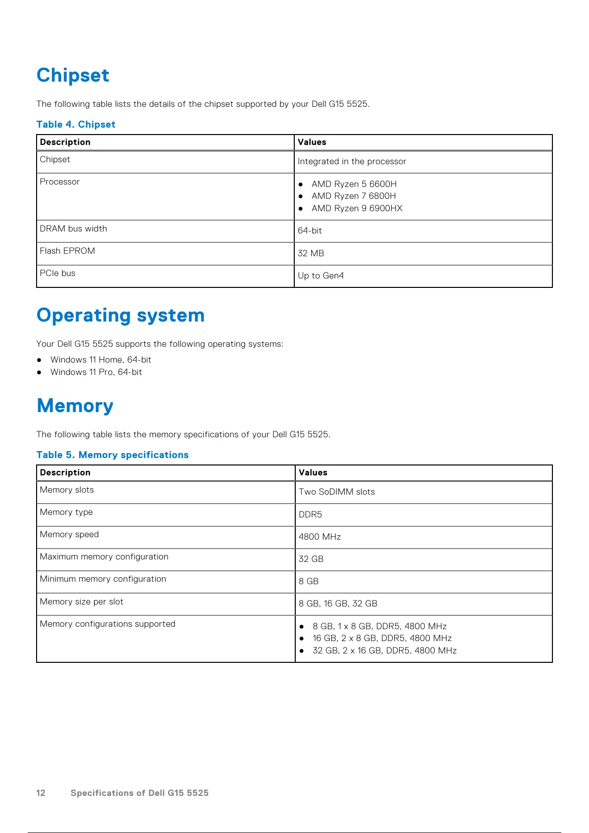 The following table lists the details of the chipset supported by your Dell G15 5525.