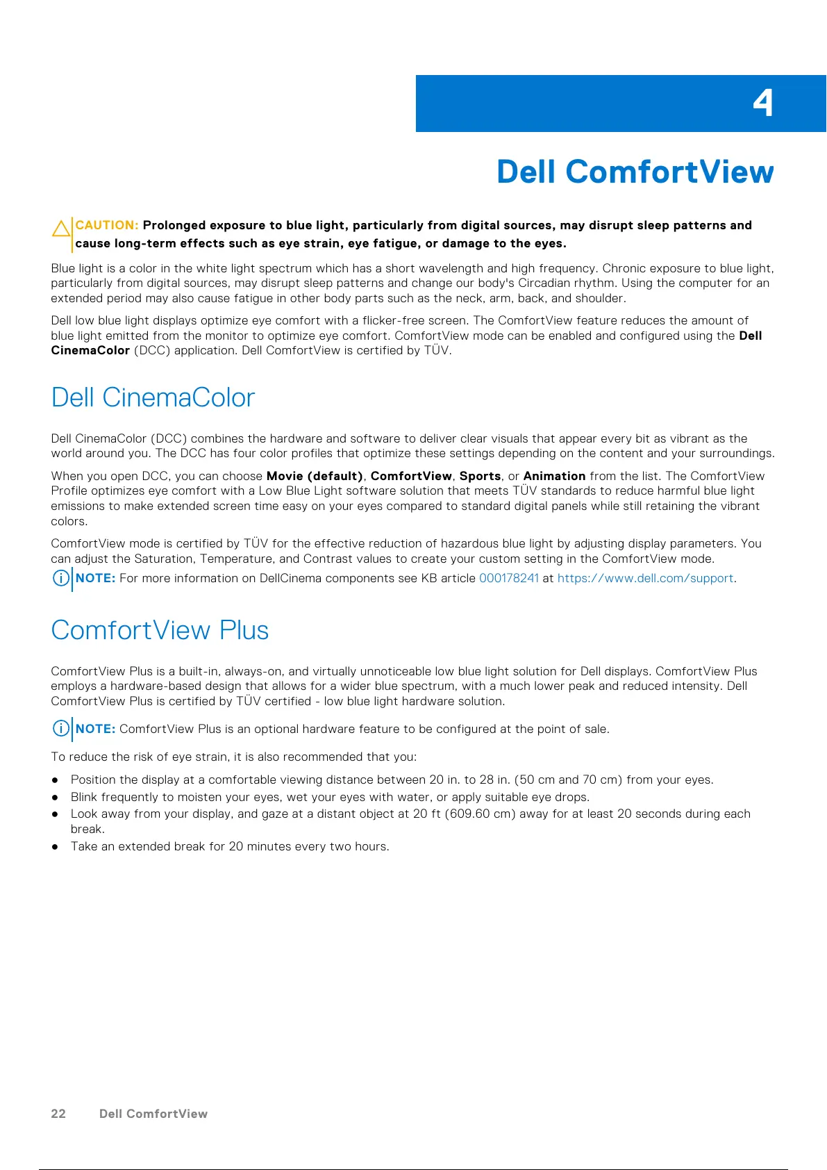 CinemaColor (DCC) application. Dell ComfortView is certified by TÜV.