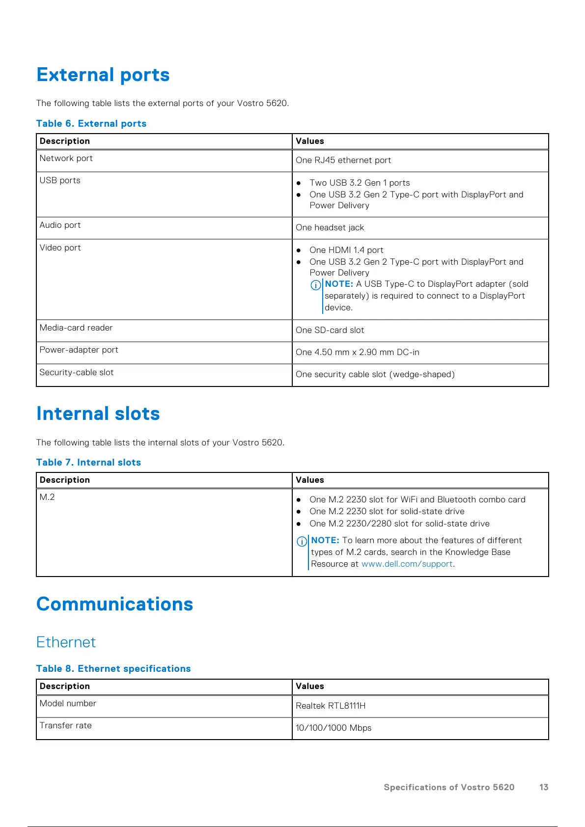 Specifications of Vostro 5620 13