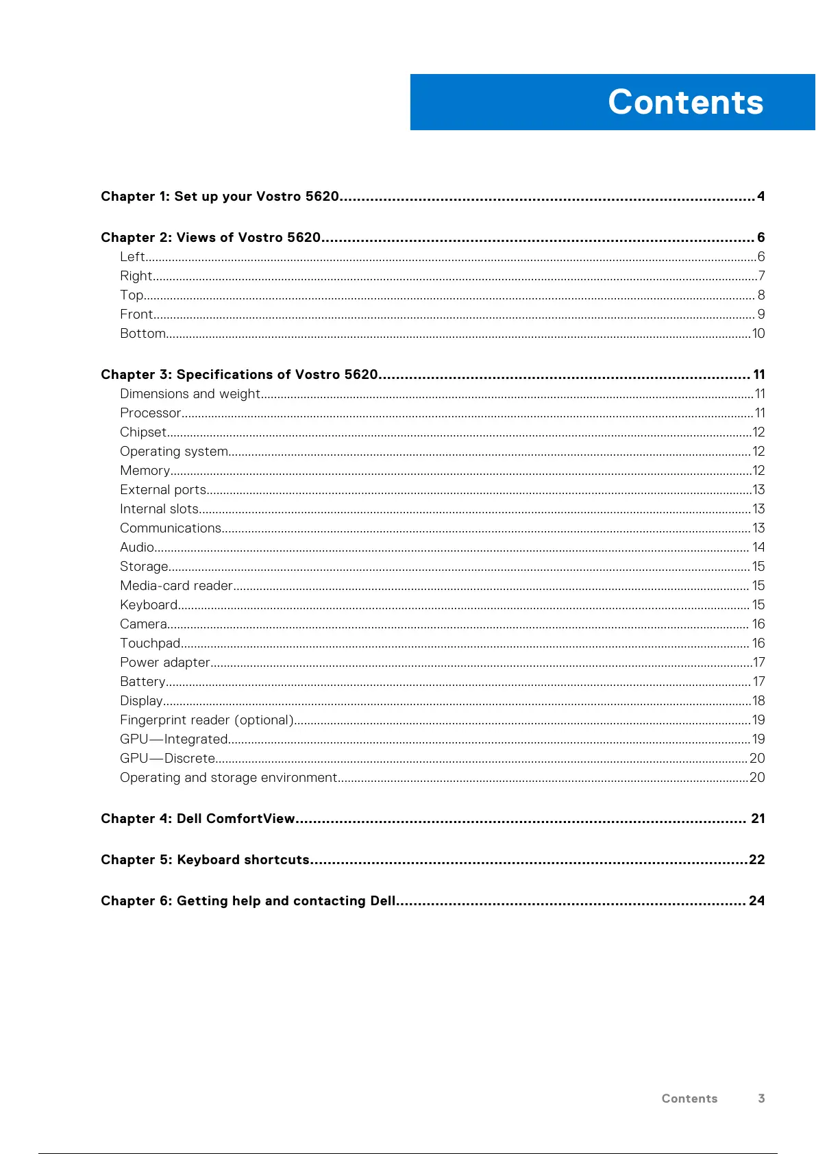 Chapter 3: Specifications of Vostro 5620..................................................................................... 11