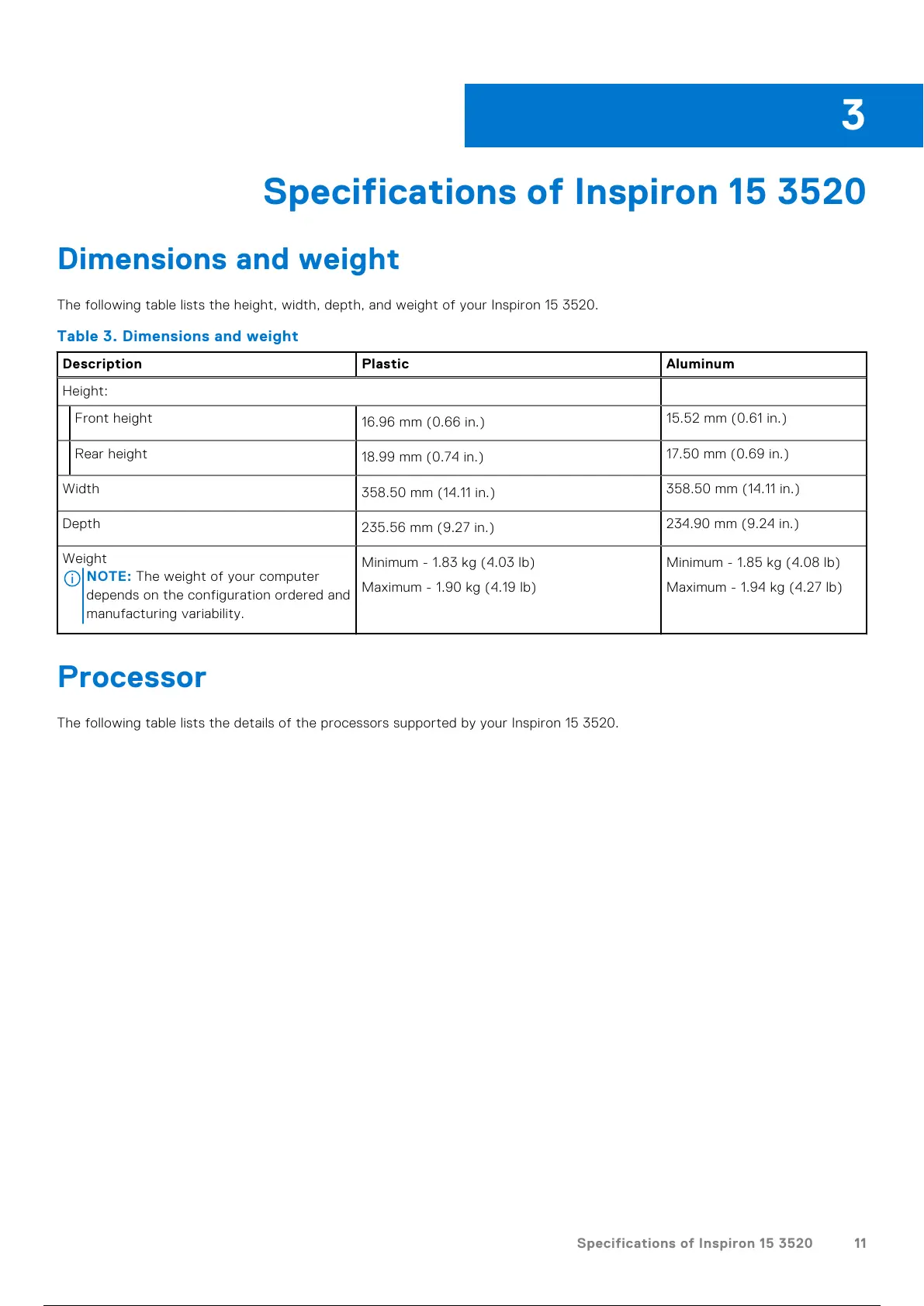 Specifications of Inspiron 15 3520 11
