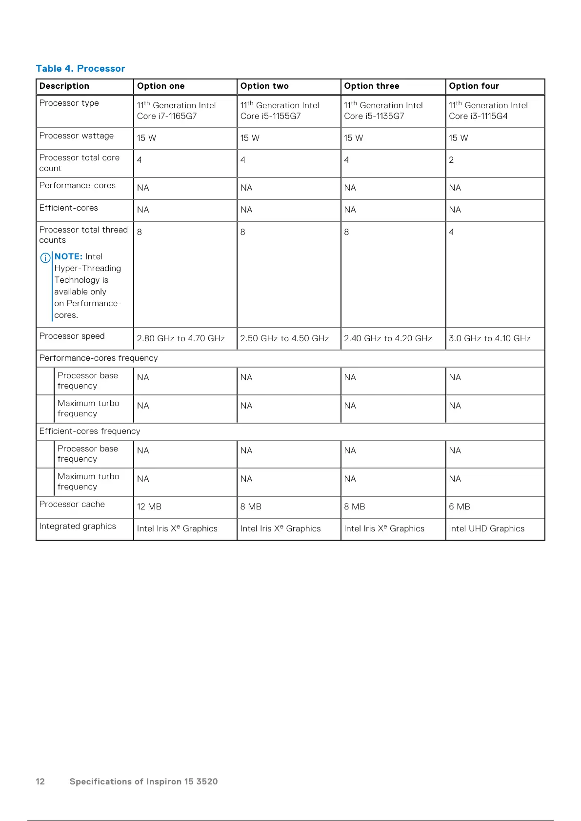 12 Specifications of Inspiron 15 3520