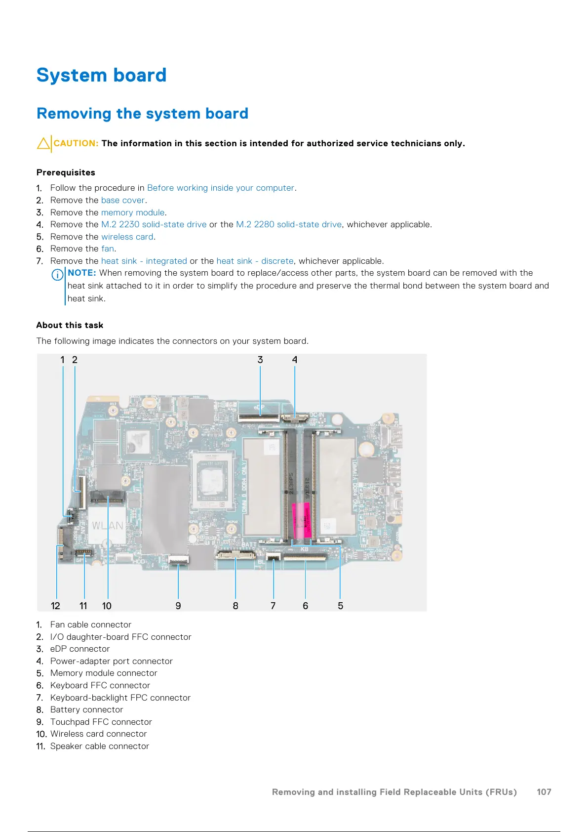 NOTE: When removing the system board to replace/access other parts, the system board can be removed with the