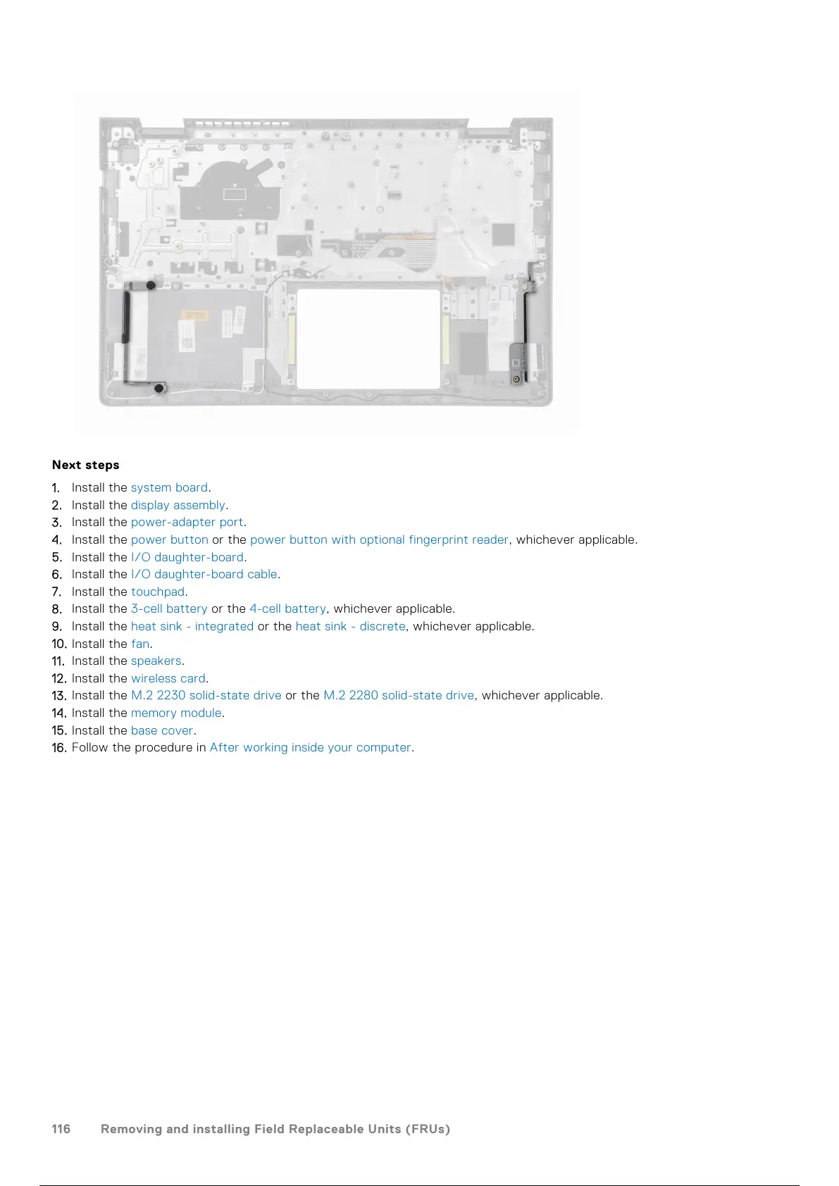 16. Follow the procedure in After working inside your computer.