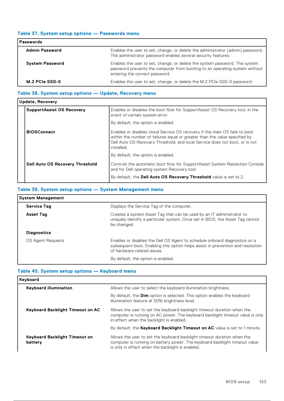 SupportAssist OS Recovery Enables or disables the boot flow for SupportAssist OS Recovery tool, in the