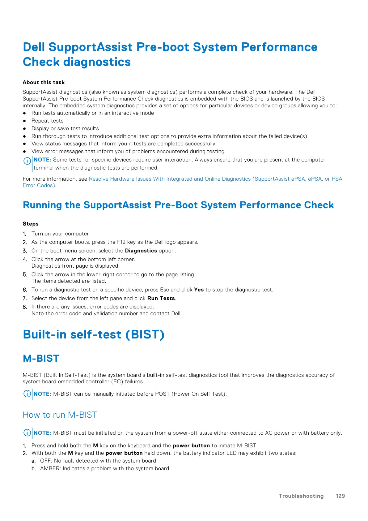 M-BIST (Built In Self-Test) is the system board's built-in self-test diagnostics tool that improves the diagnostics accuracy of