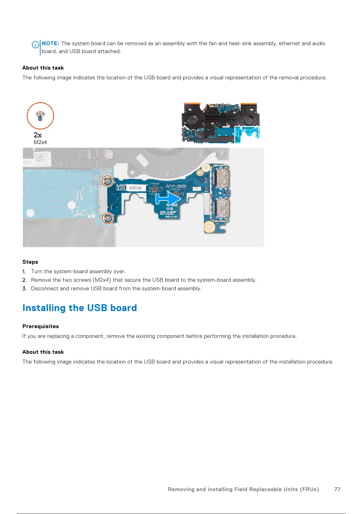 2. Remove the two screws (M2x4) that secure the USB board to the system-board assembly.