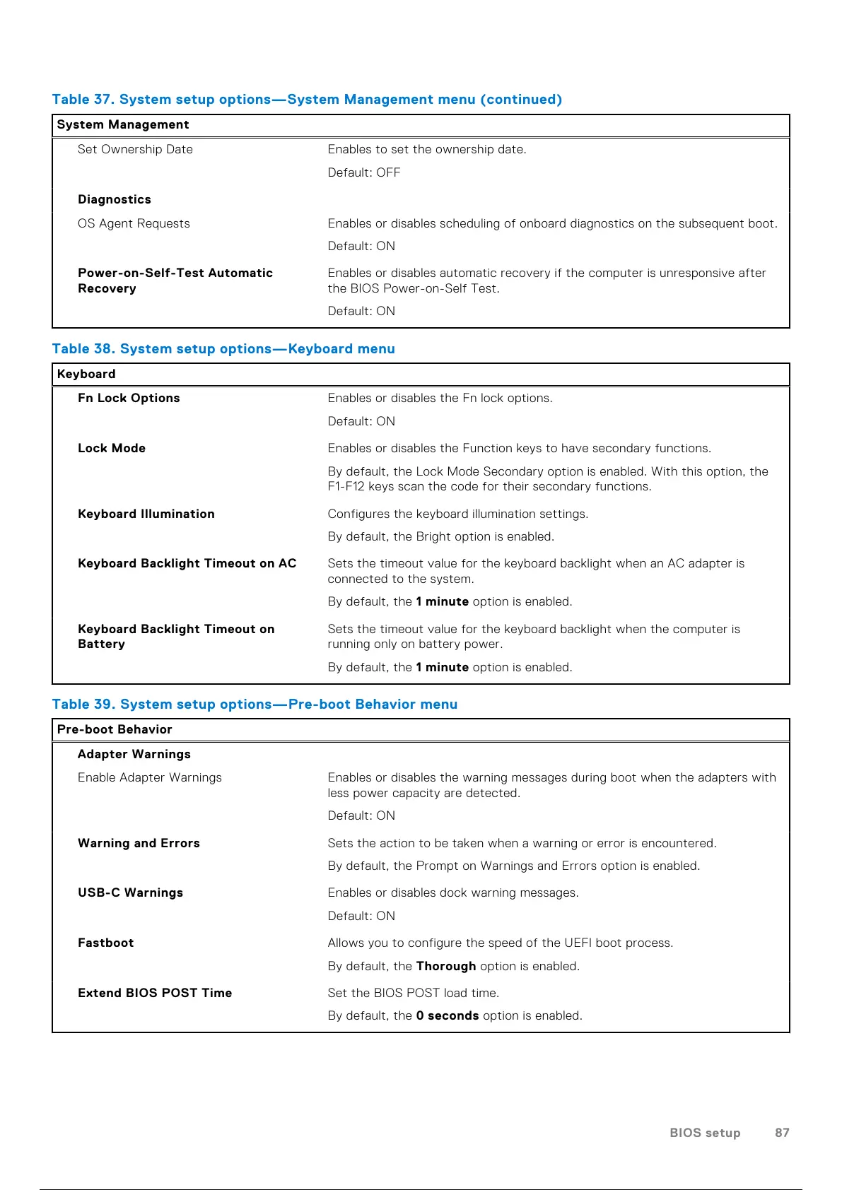 Table 39. System setup options—Pre-boot Behavior menu