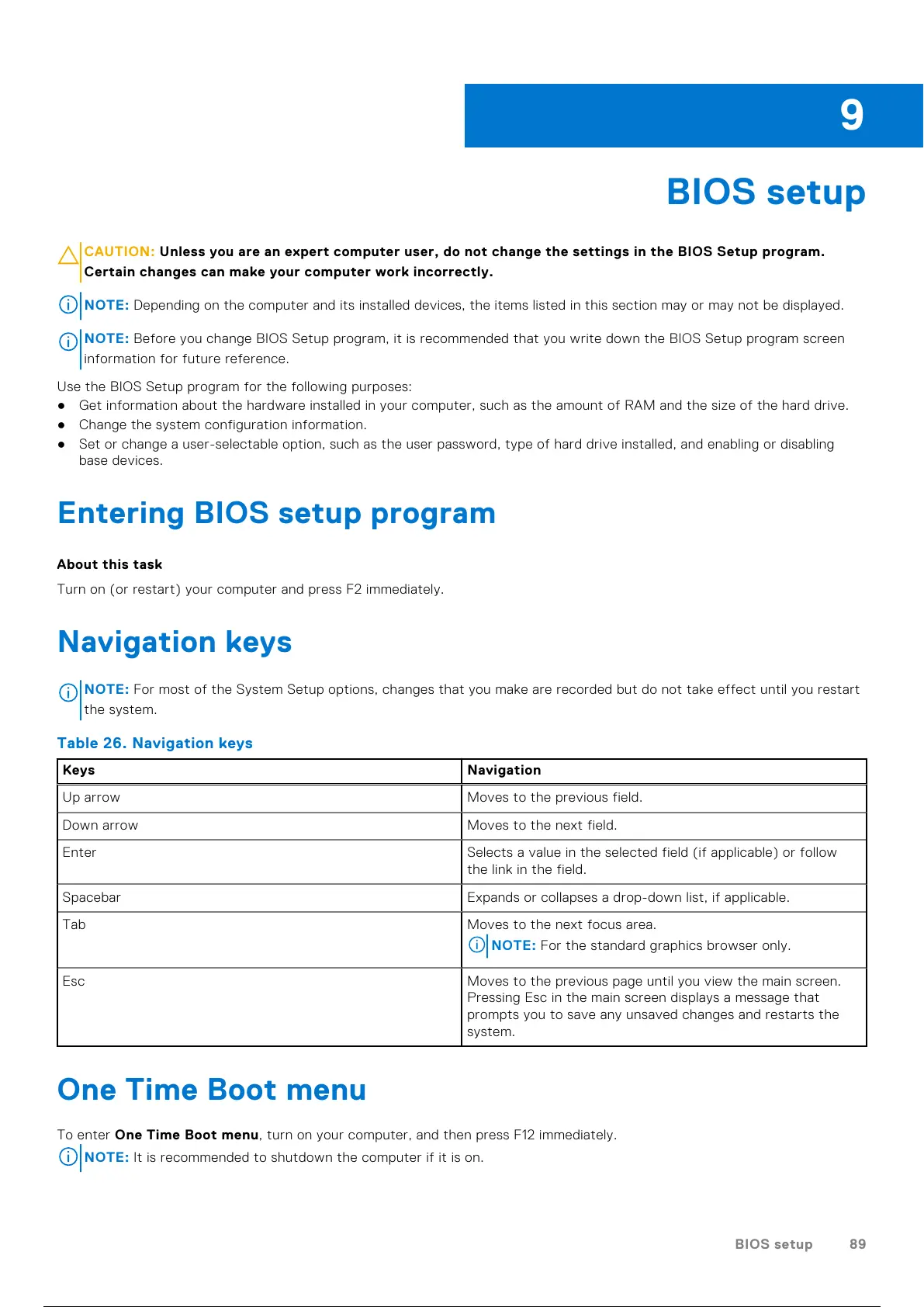 CAUTION: Unless you are an expert computer user, do not change the settings in the BIOS Setup program.